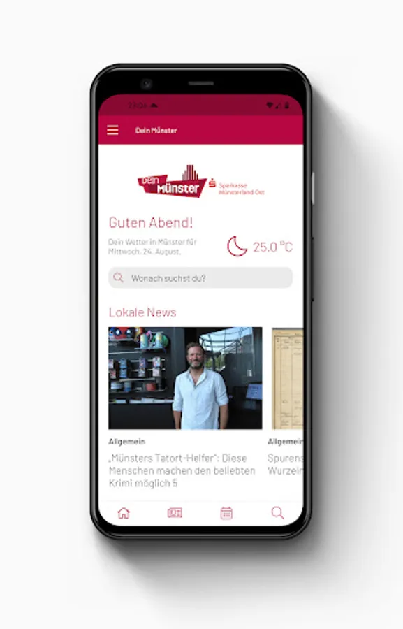 With the Dein Münster app you get exactly the information and tips you need - at any time of the day: in the morning all the latest news from Münster, at lunchtime suitable restaurant locations for your lunch break and at the end of the day there are concerts, visits to the cinema or exciting tips for going out in the Munster region.