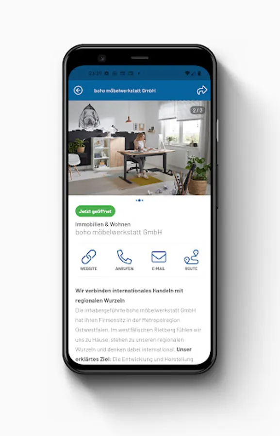 In the app you will find exclusive offers from our partner companies. These are companies, businesses, shops, restaurants, service providers, the self-employed, but above all regional and local partners who offer you special services and benefits in Schloss Holte-Stukenbrock. With the filter function in the app, you can display companies nearby and find out which shops are now open.