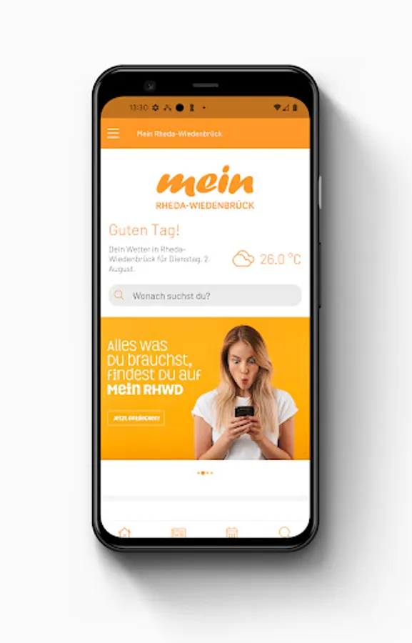 With the Mein RHWD app you get exactly the information and tips you need - at any time of the day: in the morning all the latest news from Rheda-Wiedenbrück, at lunchtime suitable restaurant locations for your lunch break and at the end of the day there are concerts, visits to the cinema or exciting tips for going out in the Rheda-Wiedenbrück region.