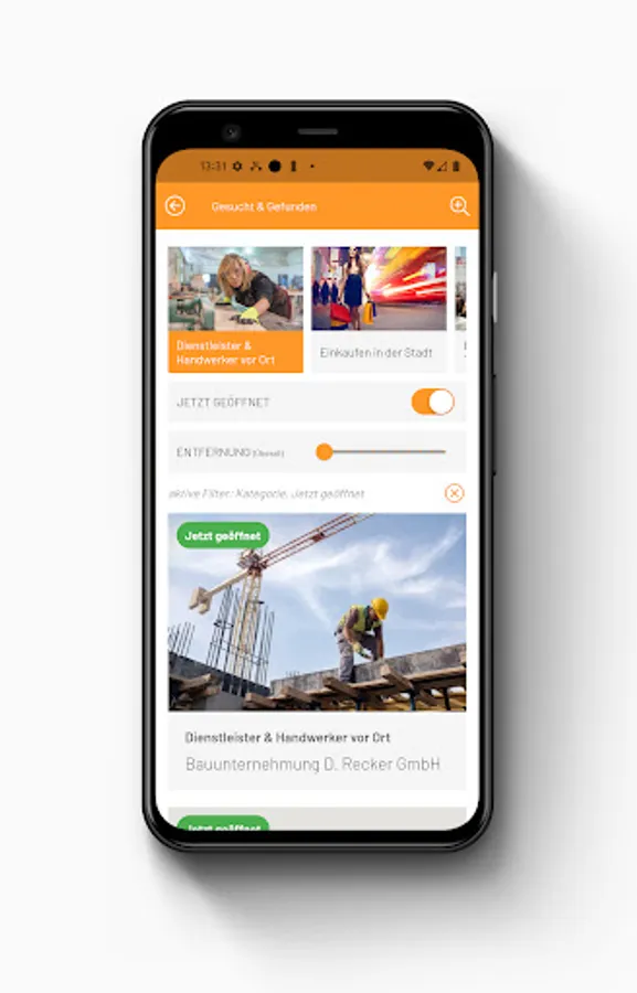 In the app you will find exclusive offers from our partner companies. These are companies, businesses, shops, restaurants, service providers, the self-employed, but above all regional and local partners who offer you special services and benefits in Rheda-Wiedenbrück. With the filter function in the app, you can display companies nearby and find out which shops are now open.