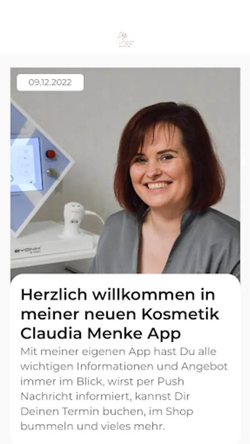 You can easily access the app shop of your Claudia Menke cosmetics studio, regardless of time and location. Care products, vouchers and other items can be purchased conveniently and from anywhere.