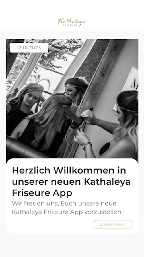 You will receive the most important news, offers and updates from your Kathaleya hair salon as easily and directly as possible. Special opening times or salon information, new employees, styling tips of the week or limited specials - you are always up to date with your own digital Kathaleya salon newspaper. With your own newsfeed in your app, you always have the most important information summarized in a compact way on your smartphone. Particularly important information, offers and specials will be sent to you via push message in the most direct way.