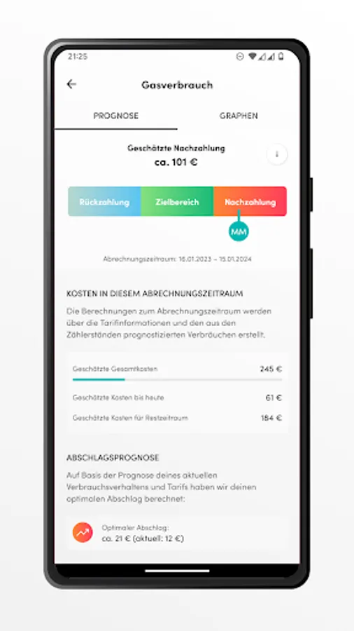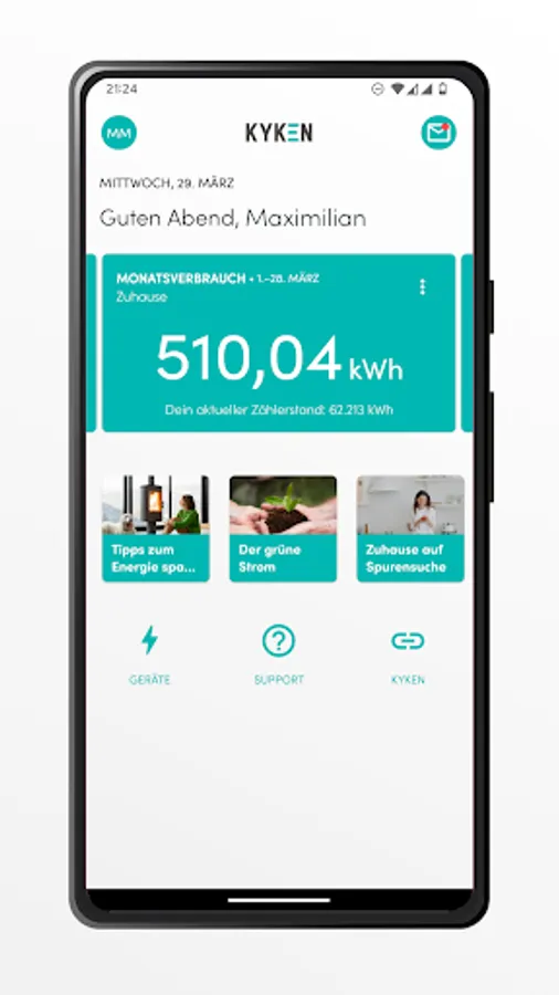You don't know how much you are currently consuming and whether you have to worry about additional payments at the end of the year? With KYKEN you not only see your historical and current consumption, but also get helpful information - so that you can take countermeasures at an early stage if necessary.