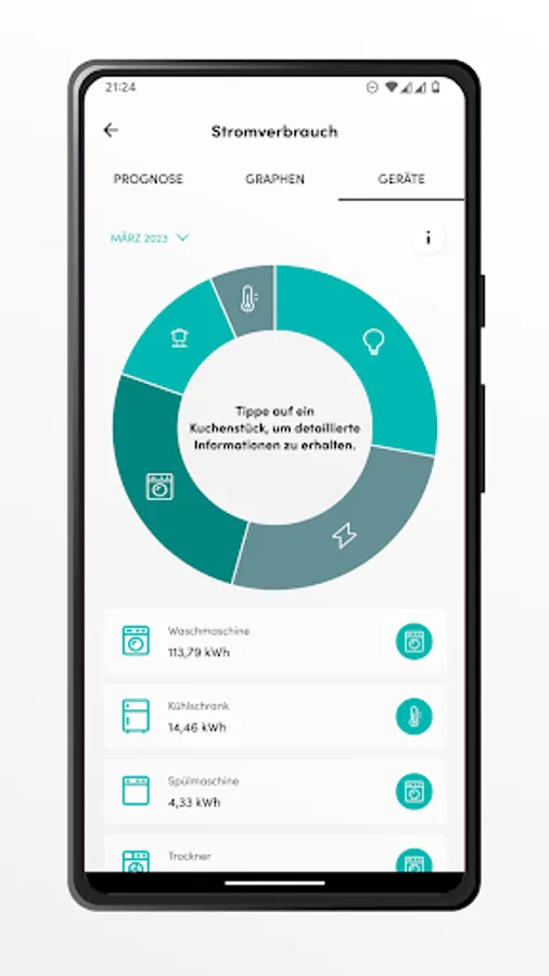 Do you want to save energy and don't know where to start? KYKEN is your energy compass! In addition to your meter readings, you can also see the consumption of your device groups, such as "Heating & Cooling" and examine how much electricity your refrigerator uses. Find savings potential easily and save money.