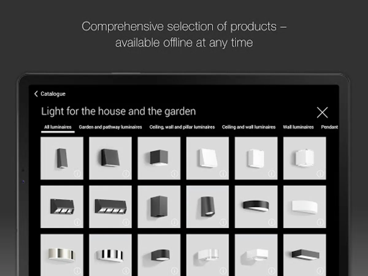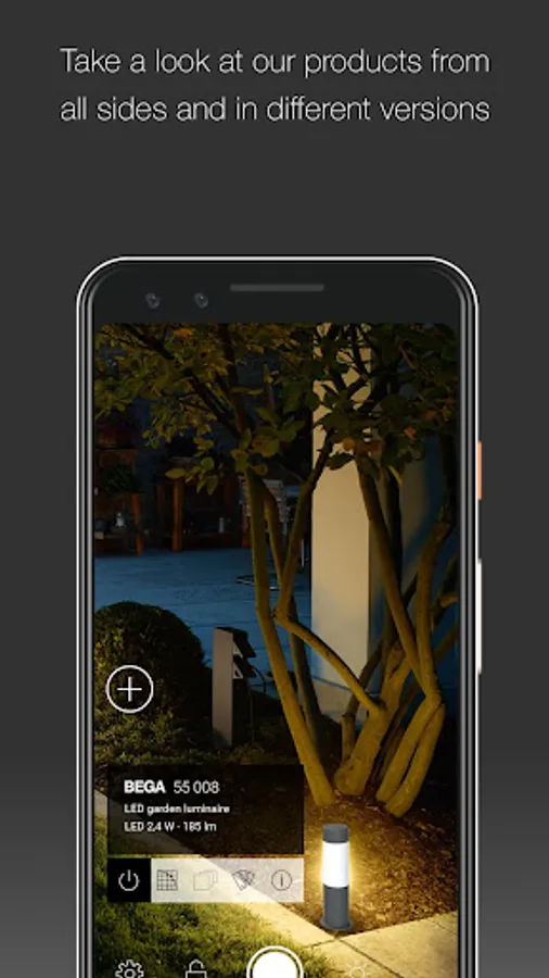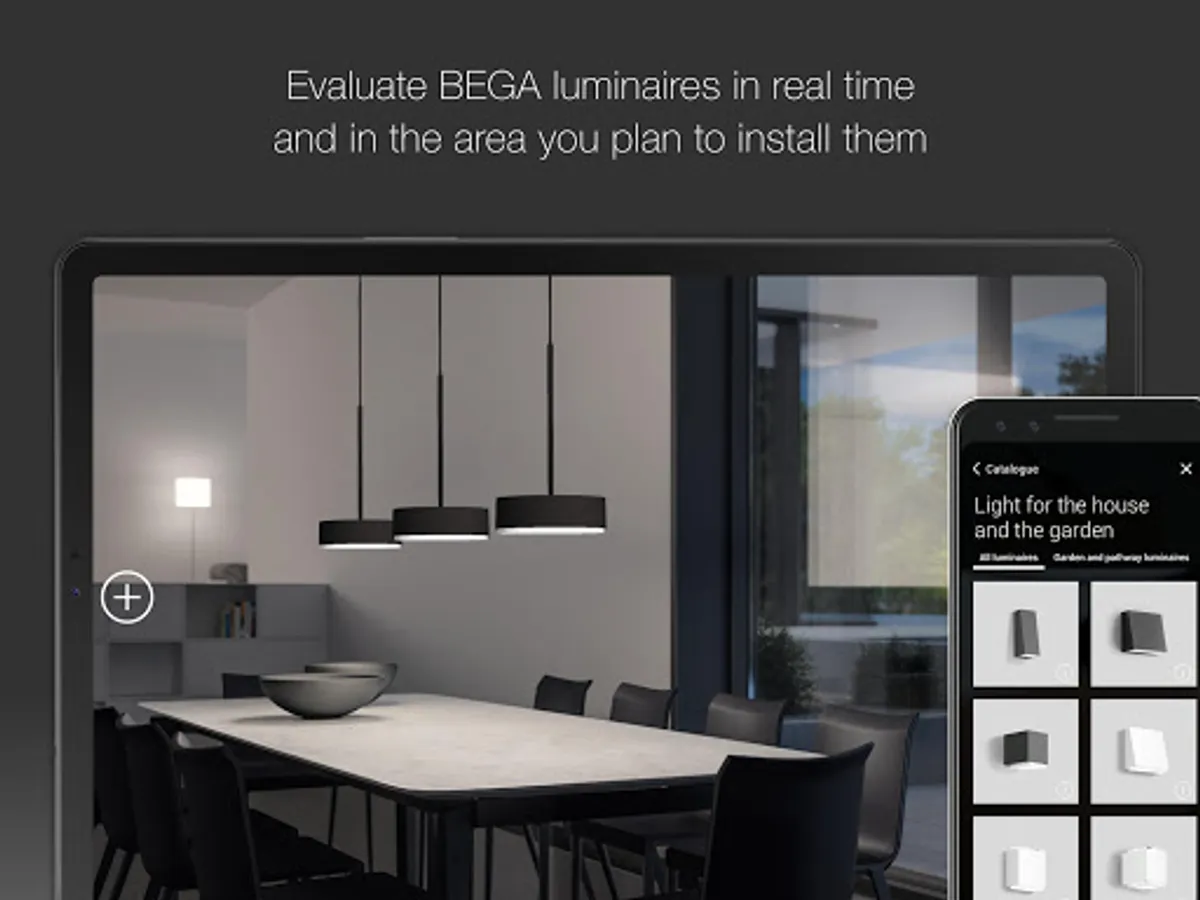 With the free BEGA AR+ app, our luminaires can be viewed from all angles in the area they are to be installed. Simply download the convenient app to your smartphone or tablet and it's ready to use. After scanning the planned area of installation, the selected luminaires can be placed.