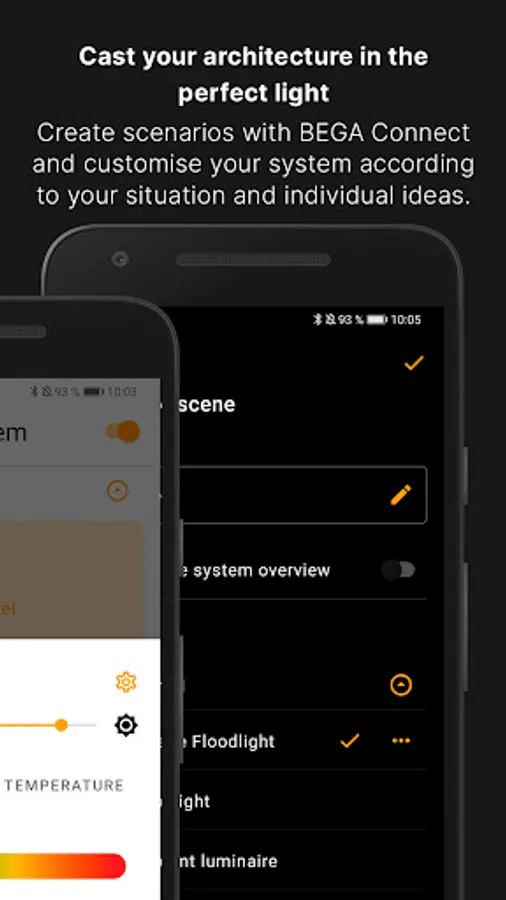 BEGA Connect means: focusing on what's important, simple and intuitive. The user interface of the app has been specially designed so that BEGA Connect can be operated without any technical knowledge. Digital, mobile and flexible. Whether it’s for small lighting installations or large lighting projects. Create individual lighting scenarios and luminaire groups, and control the light colour and colour temperature on RGBW and tunable white luminaires.