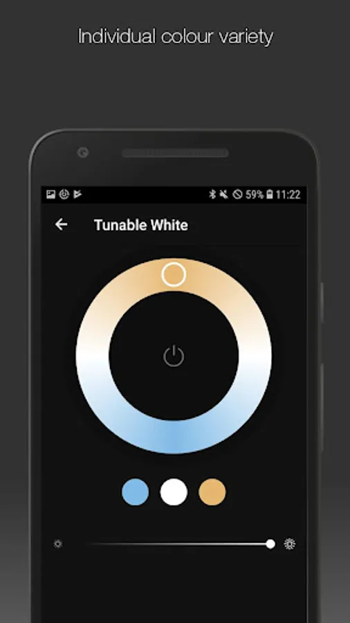 An automated colour loop function can be activated for dynamic lighting situations with RGBW lamps.