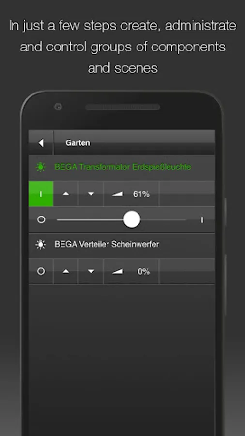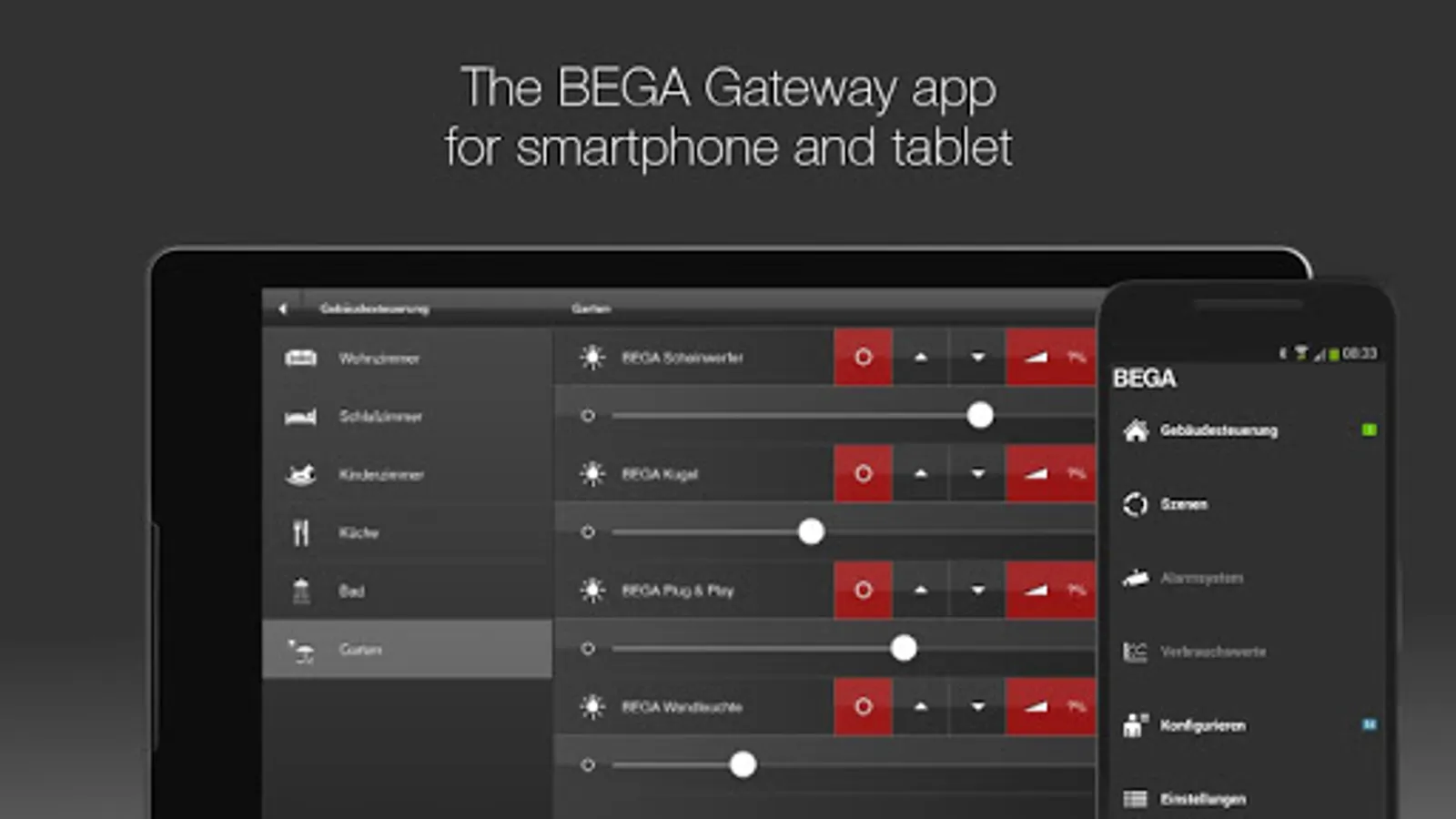 The BEGA Gateway app allows you to dim lights, switch sockets on and off, regulate shading, measure your power consumption and many other things.