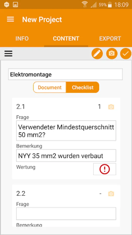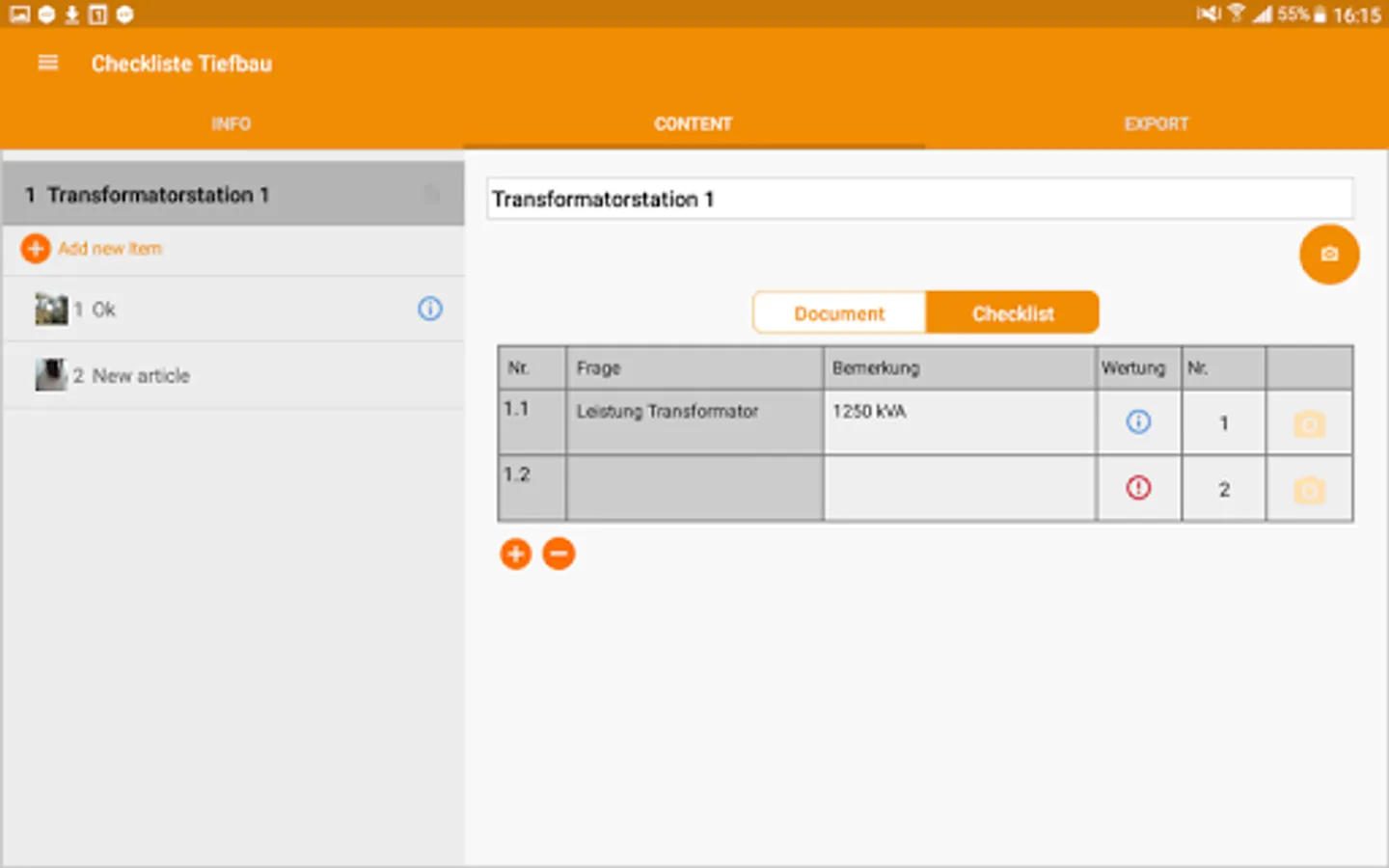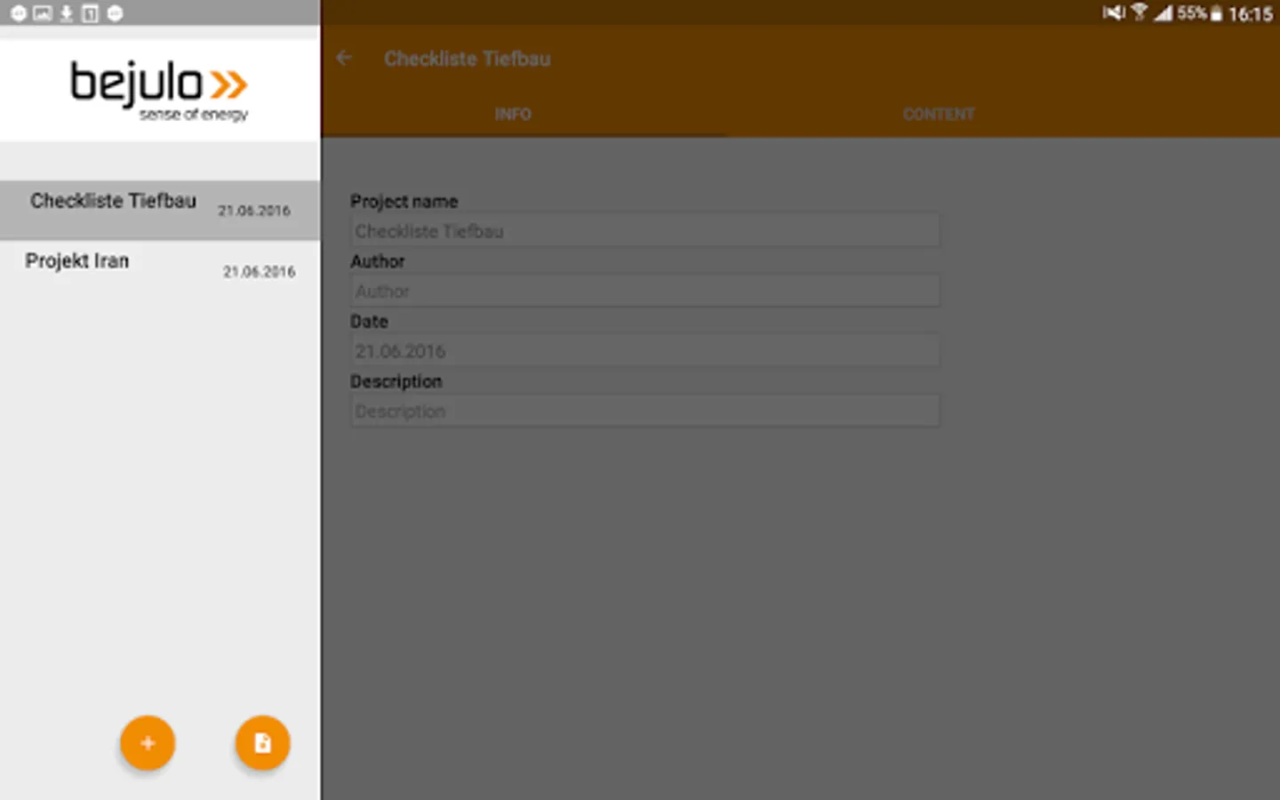 Die Bejulo GmbH erstellt Vorlagen für Checklisten und Gutachten die bei der Bewertung vwährend der Errichtung von Photovoltaikanlagen verwendet werden. Mitarbeiter und Subunternehmer importiert die Vorlagen und nutzt diese für eine schnelle, professionelle und vollständige Aufnahme von Mangel vor Ort. Dazu gehören die Bewertung von einzelnen Prüfpunkten, das Notieren von Kommentaren sowie das Aufnehmen von Bildern. Nach der Zusammenstellung der Informationen gelingt über die Exportfunktion die Fertigstellung des finalen Berichtes als Word-Datei. Diese kann vom Nutzer individuell nach bearbeitet werden.