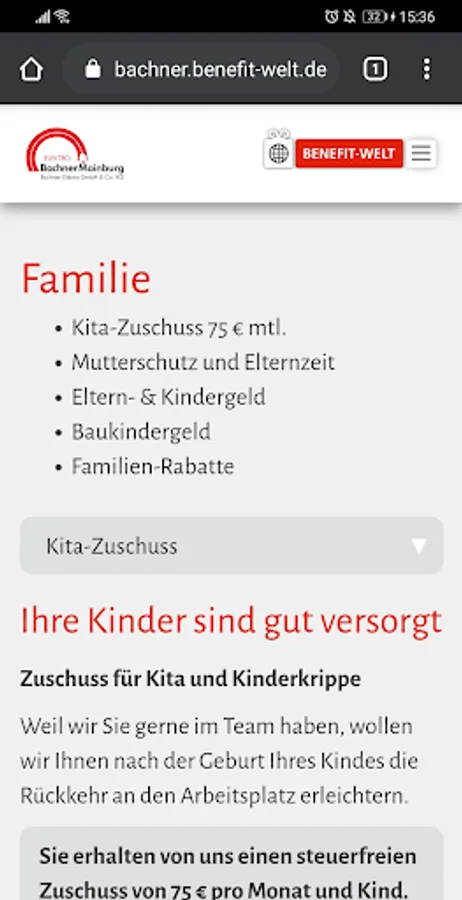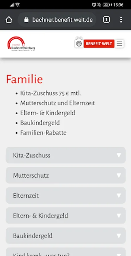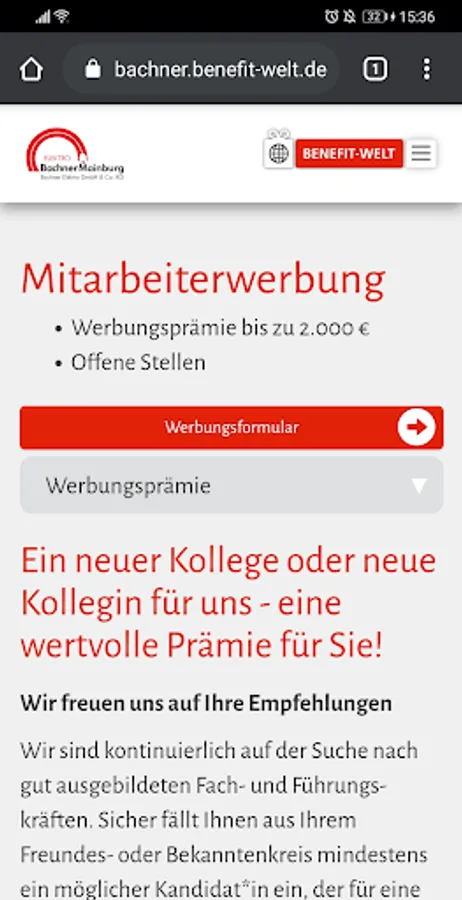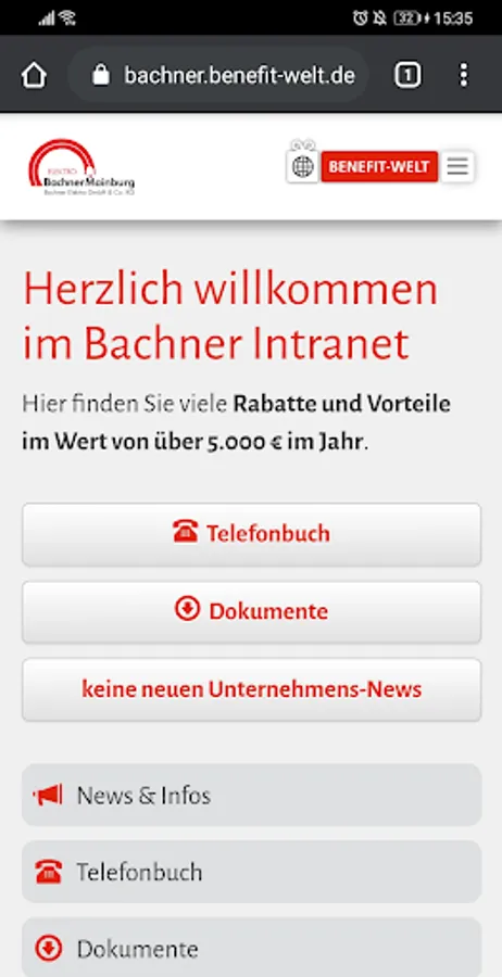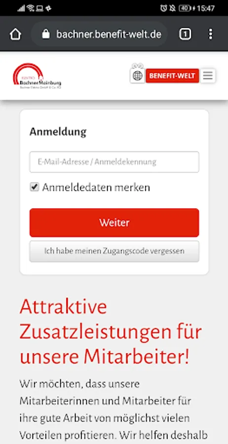 Log in once for the first registration with your Windows login (https://Bachner.benefit-welt.de) and then use the app with a simple click to see the benefits.