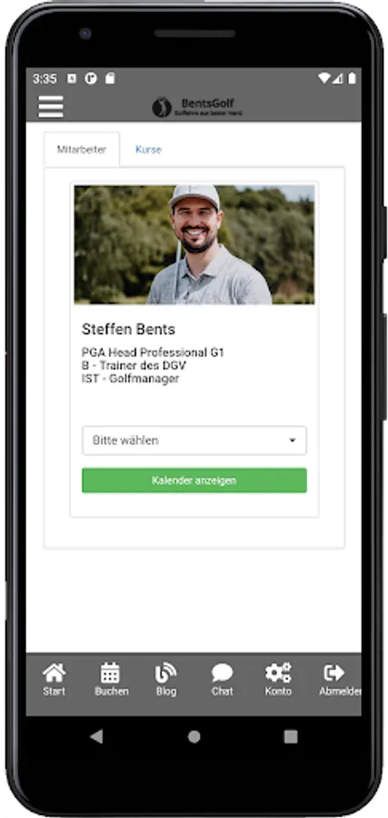 Mit der Bentsgolf App können Sie bequem Ihren Golfunterricht buchen und Ihre Kundendaten verwalten.
