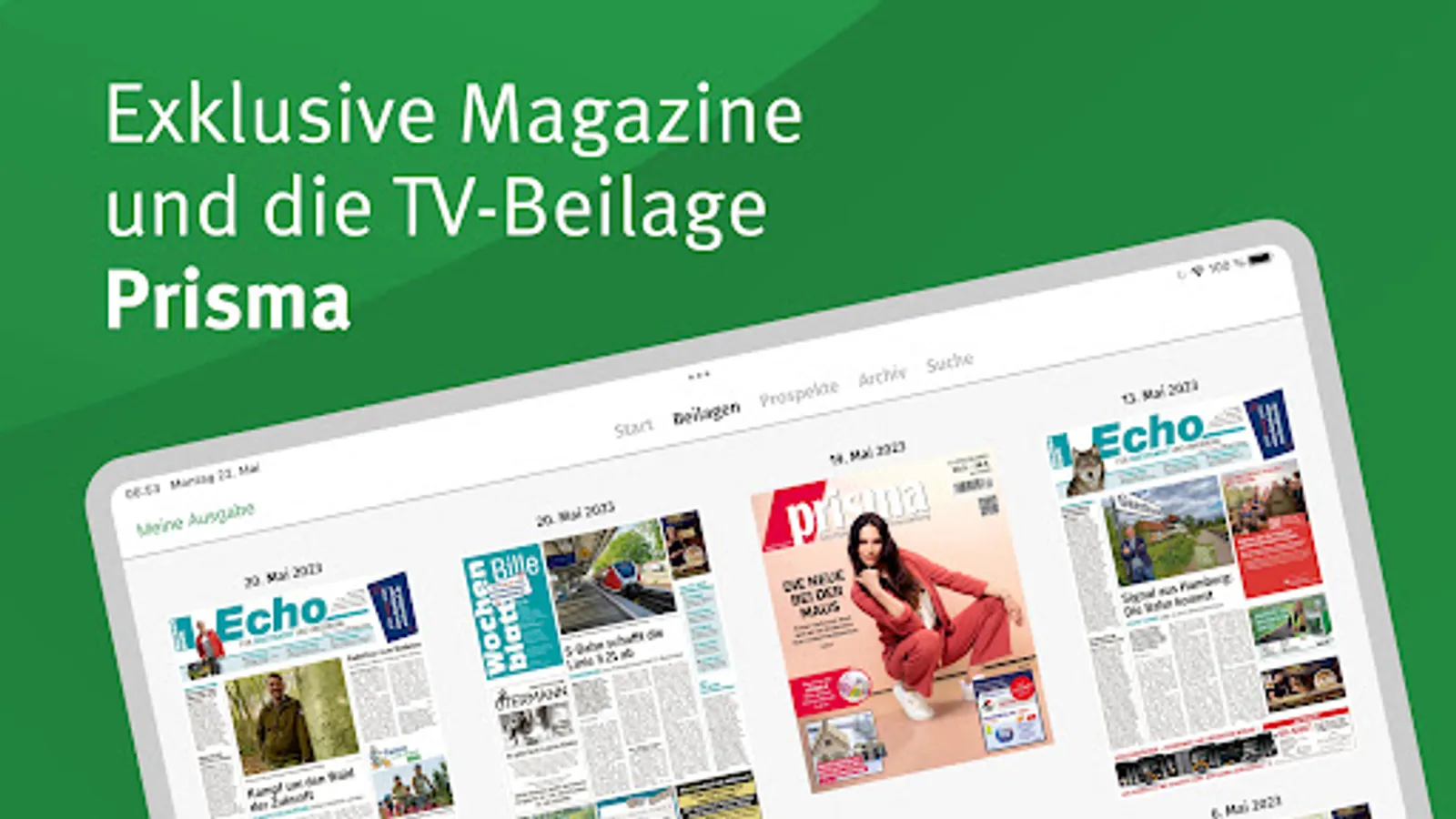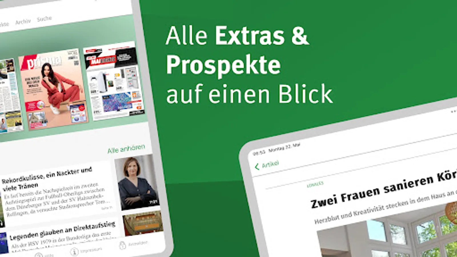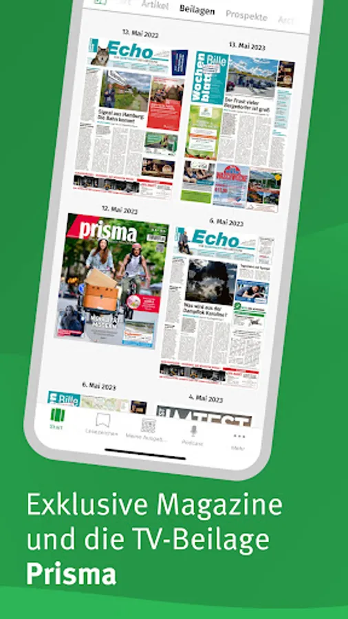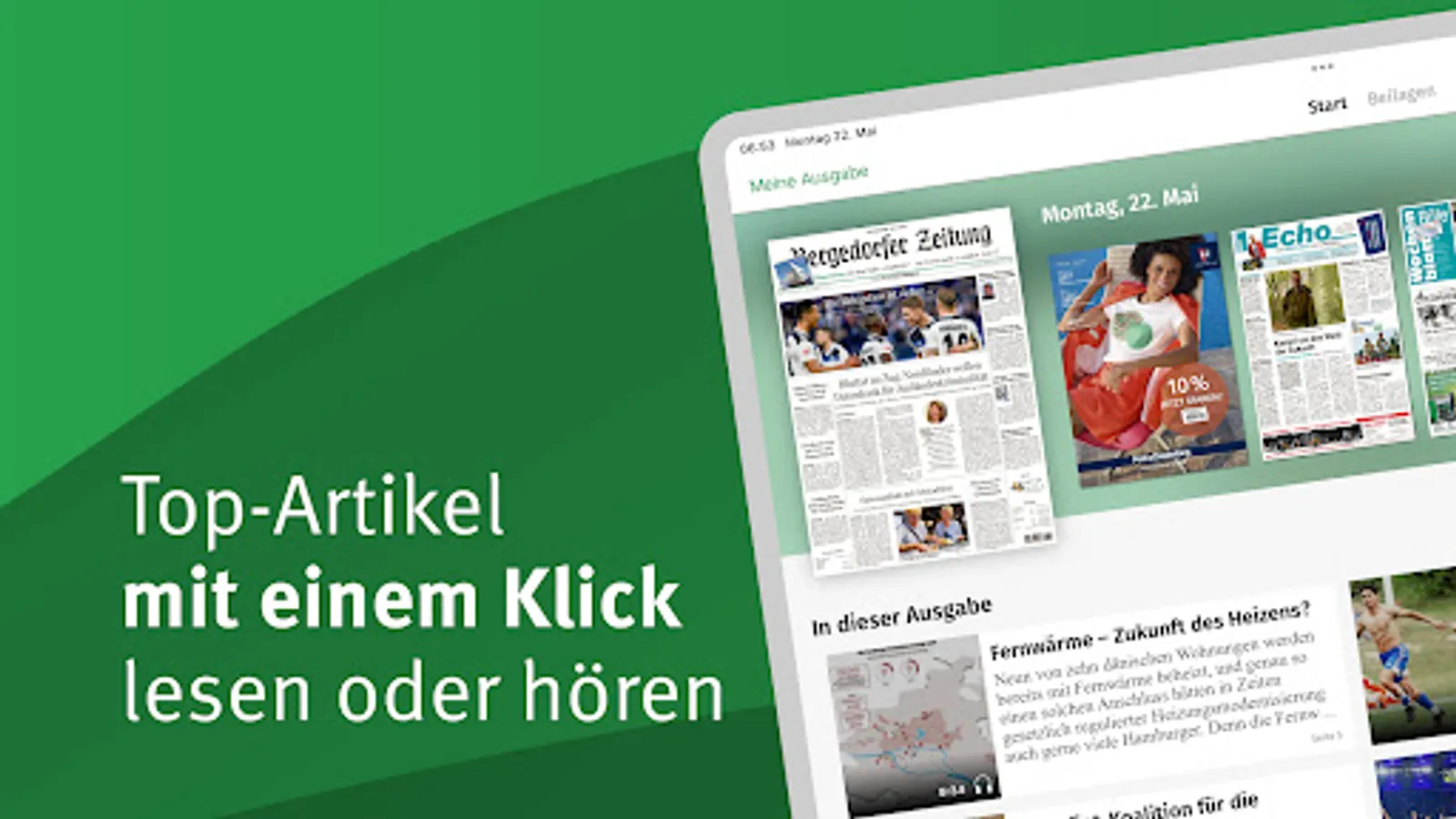 Read your newspaper anywhere - on the subway, in a café or on vacation. You can read all downloaded issues at any time, even without an internet connection. You don't have to do without digital brochures and inserts either, you can find everything with just one click in our start menu.