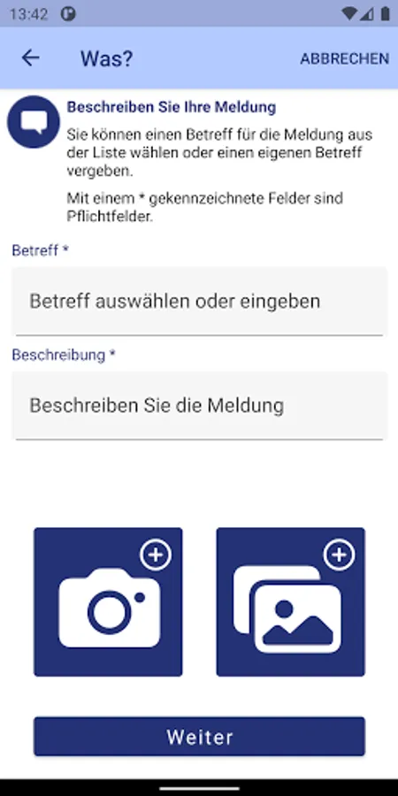 Use of the app is possible even without the provision of personal data (anonymously). If you want to get a feedback on the processing status, providing your e-mail address is at least required.