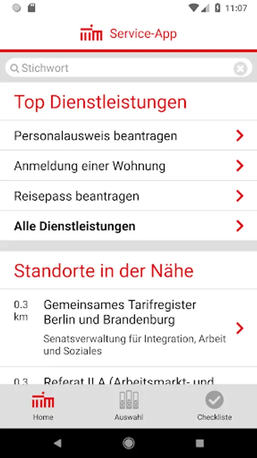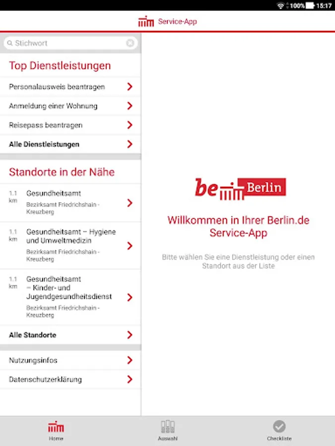 The service app Berlin is the convenient and mobile access to information about services and locations from all areas of the Berlin administration.