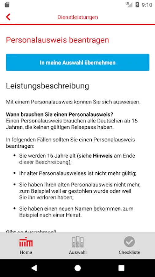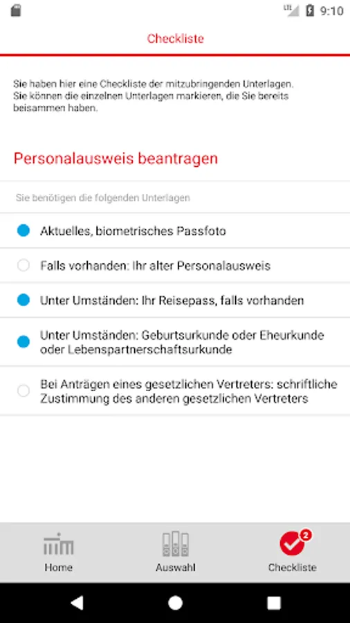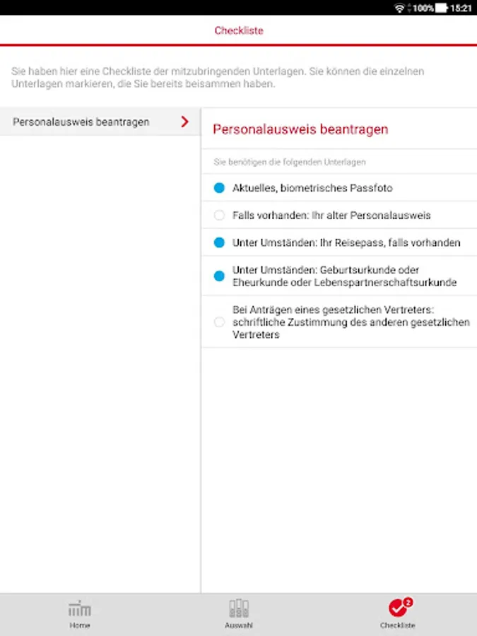 Did you find a desired service and the relevant location, you can save this selection. In a checklist for an overview of the documentation for your selected services are still needed.