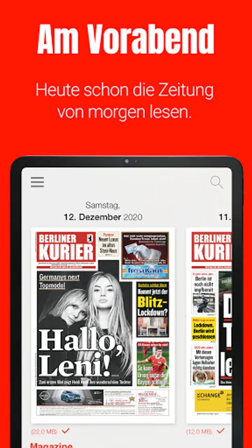 As a thank you for your download, you will receive the first Berliner Kurier e-paper issue free of charge. For unlimited access, you can conveniently take out the Berliner Kurier Digital Plus subscription in the e-paper app.