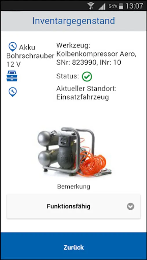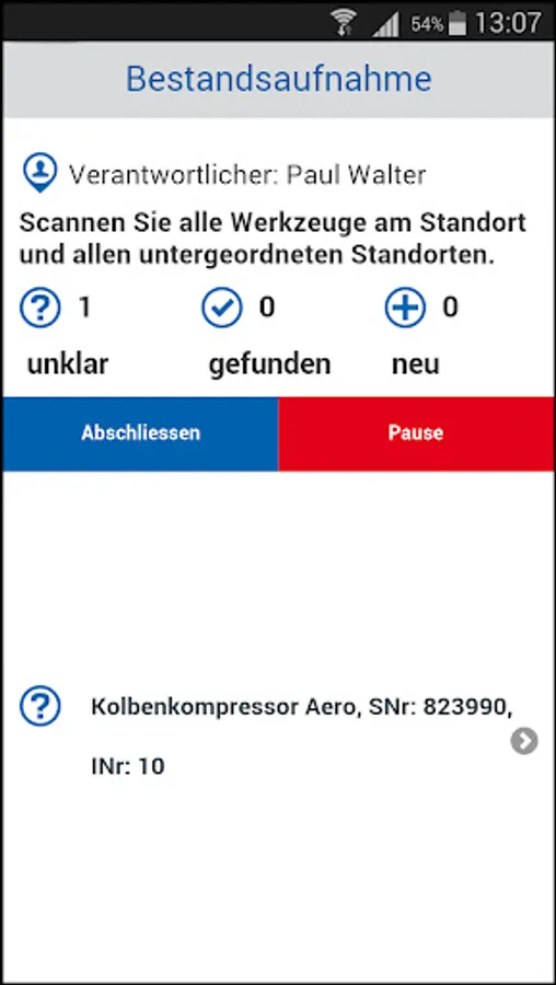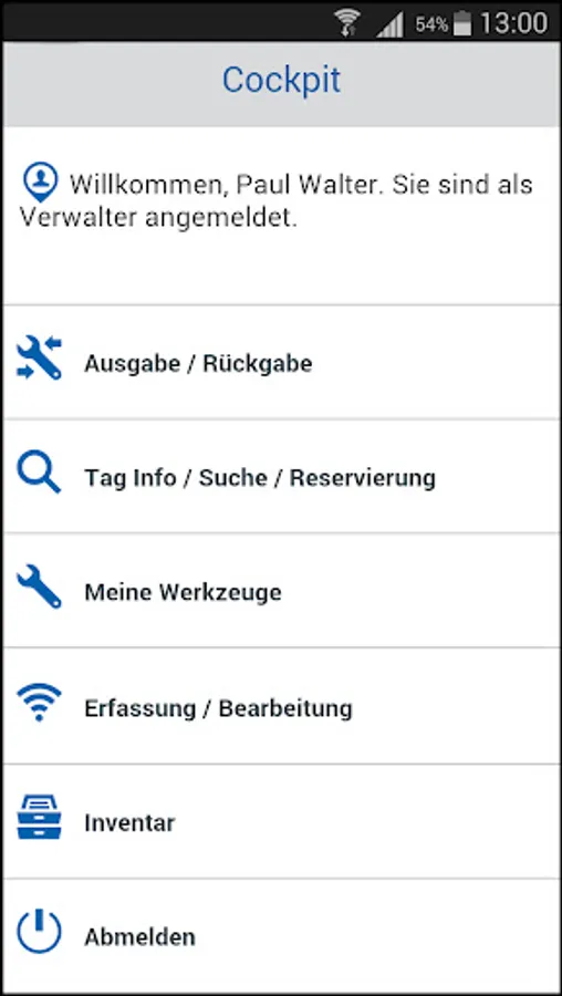 Here you can also use the app to query the locations, tool designations and borrowers.