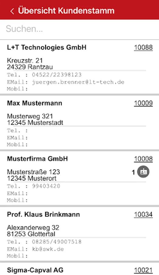 - Customer master data including contact persons and contact data