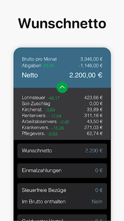 Durch das Eingeben eines Wunschnetto kannst du erfahren, welches Bruttogehalt notwendig wäre, um das gewünschte Nettogehalt zu bekommen.