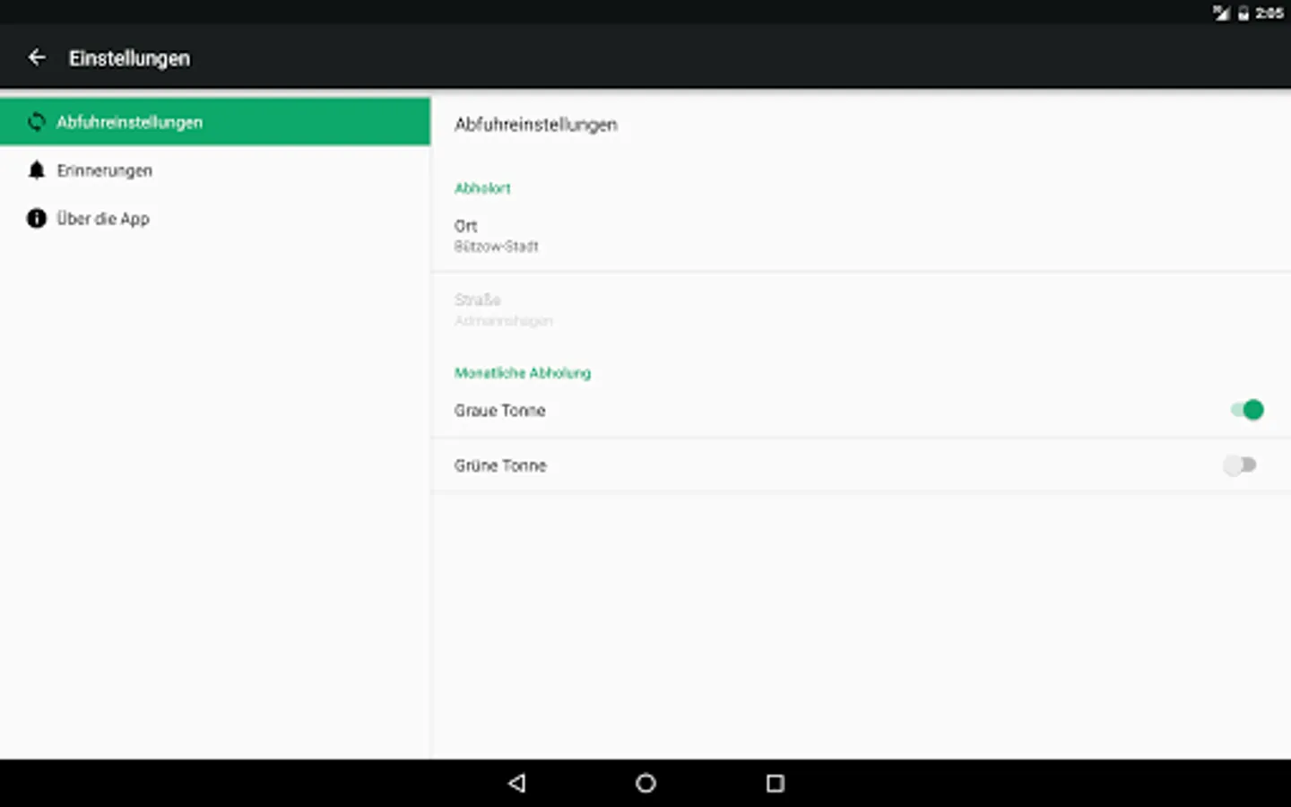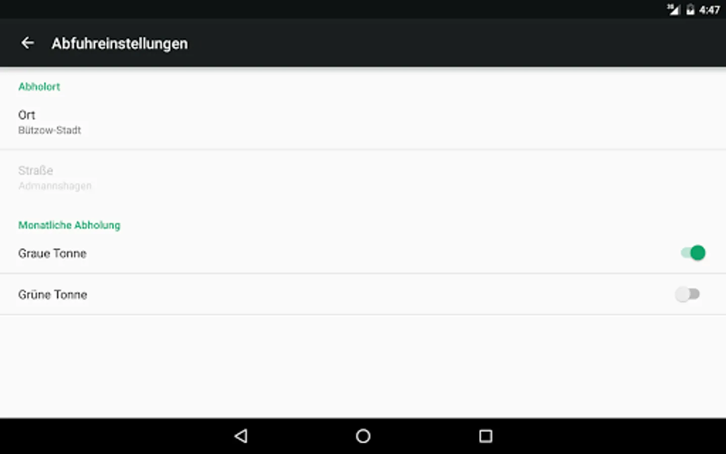 To avoid missing the trash pickup, there will be reminder notifications on the day before. Of course you can set your own location, and select the pickup schedule for each trash can individually.