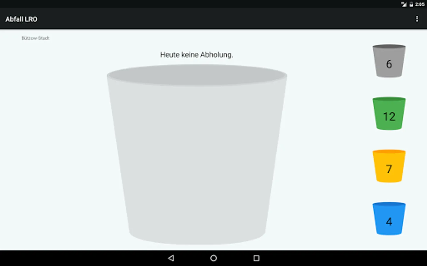 Which trashcan is being picked up today? The digital trash calendar for the district Landkreis Rostock lets you know at a glance. It also shows you the number of days until the pickup of all other trash cans.