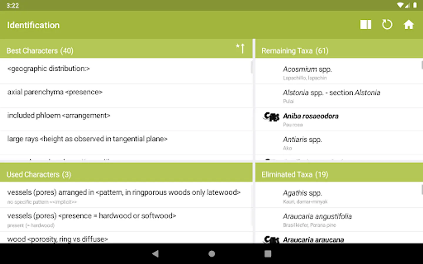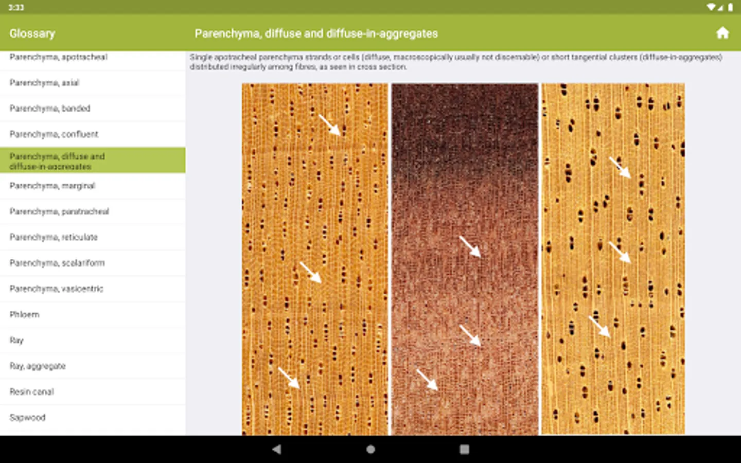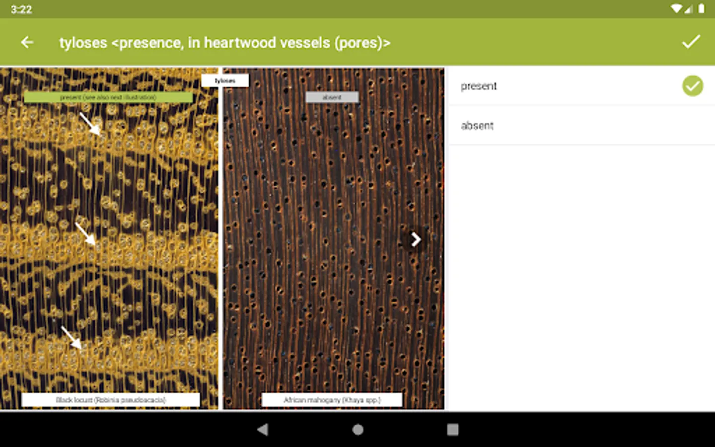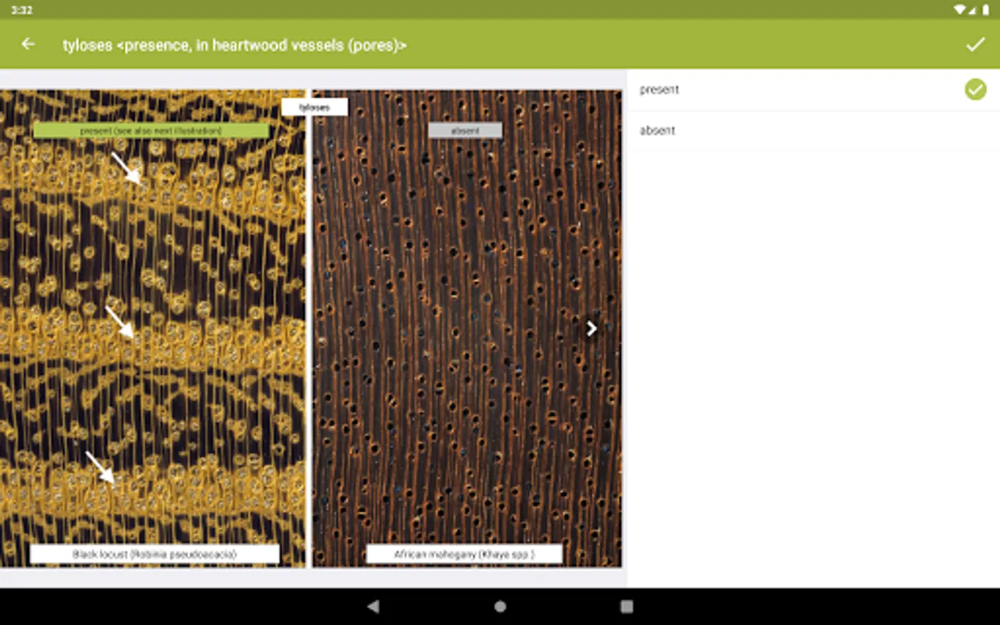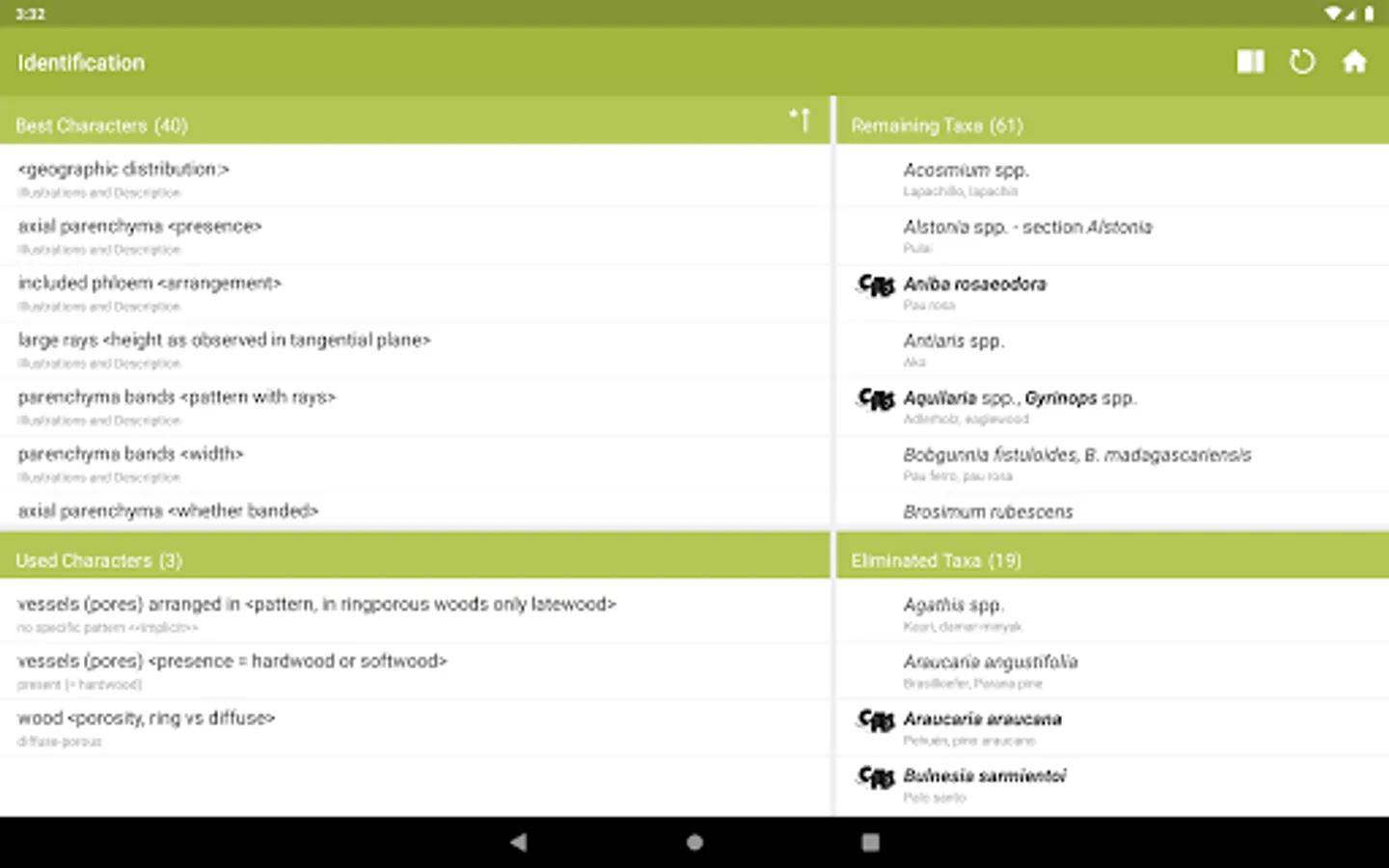 • interactive identification of the most important CITES-protected timbers (hardwoods and softwoods) based on macroscopic features to be observed with the unaided eye or with a hand lens