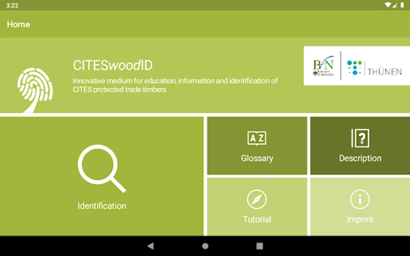The ability to identify CITES-protected wood species is of prime importance in the implementation and enforcement of the CITES controls. A valuable new support for computer-aided wood identification based on macroscopic features is provided by the development of App versions of the database CITESwoodID. The database and application software for mobile systems contain descriptions and an interactive identification system for 46 trade relevant CITES-listed timbers (e.g., ebony, mahogany, rosewood) known for their use as lumber and downstream processing into products. In addition, the database covers 34 traded timbers which can be mistaken for CITES taxa due to a very similar appearance and/or structural pattern. The database and App are designed primarily for all institutions and individuals involved in controlling the import and export of wood and wood products which are regulated by CITES. It is also of use to educational facilities active in teaching wood anatomy and wood identification.