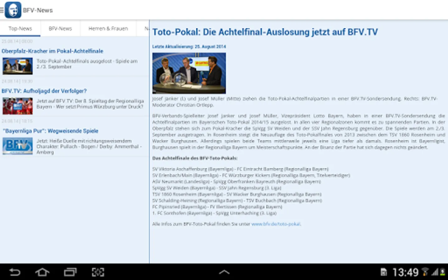 • "BFV.TV - all games, all goals from the Bavarian Regional League" with video summaries on demand of all games in the Bavarian Regional League shortly after the end of the game and other informative articles about amateur football in Bavaria
