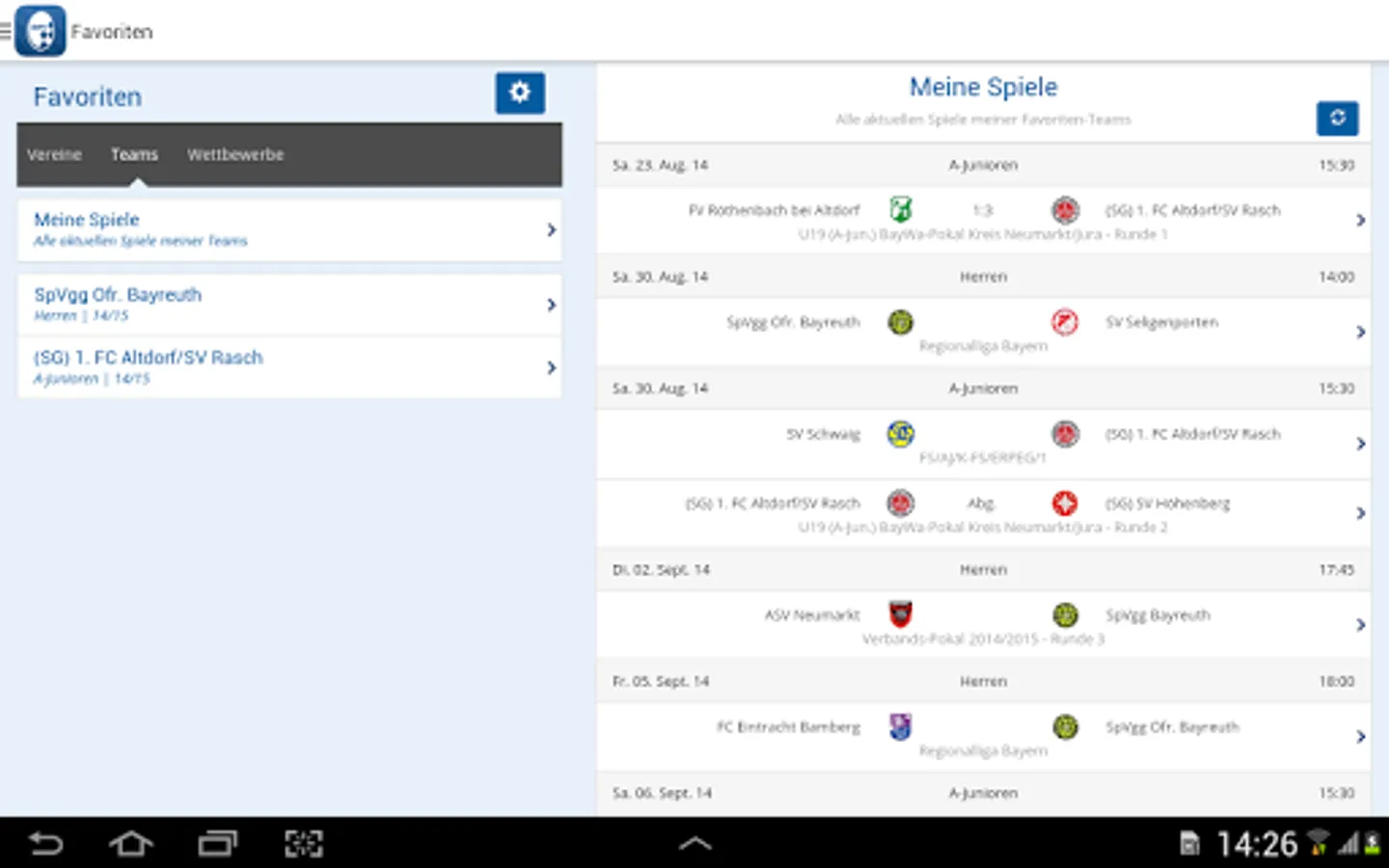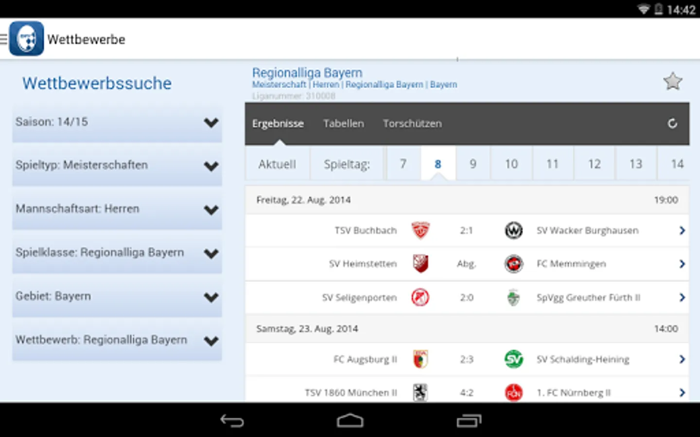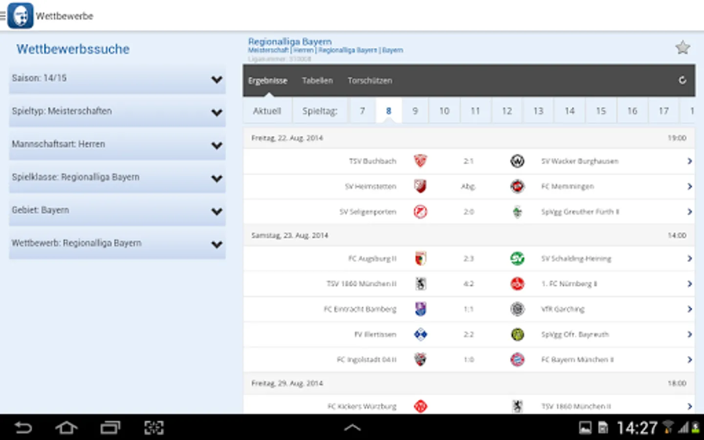 • Live and final results, tables, goal scorers and fixtures for your favorites and all other leagues, teams and clubs in Bavaria