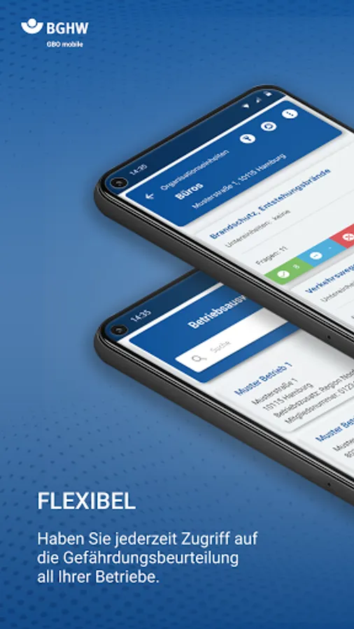 This app is a supplement to the online risk assessment (GBO) of the trade association for trade and goods logistics (BGHW) on the Internet and can only be used in conjunction with this. Simply log into the app with your username and password from the GBO.