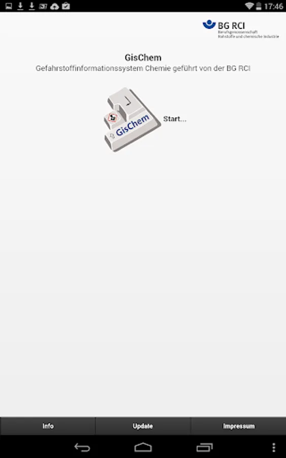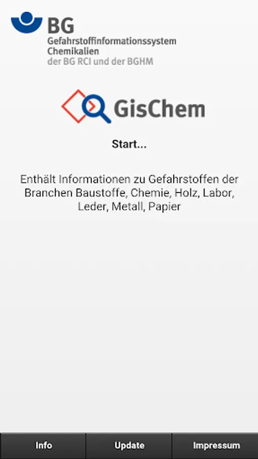 The GisChem app is created and maintained by GisChem in a cooperation of the professional association of raw materials and chemical industry, BG RCI, and the professional association of wood and metal, BGHM. Legal Please contact the BG RCI.