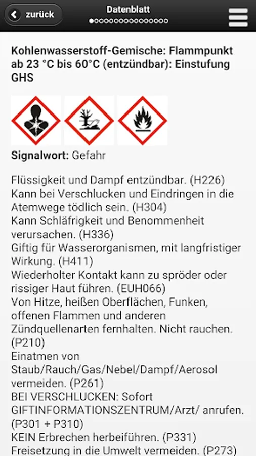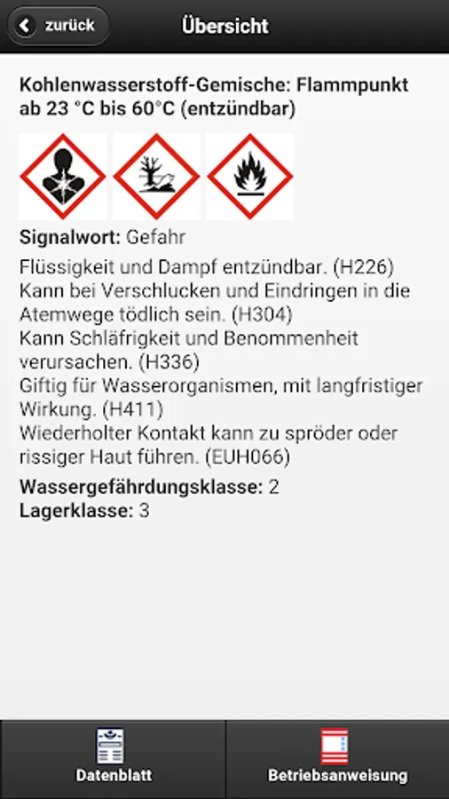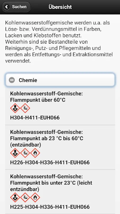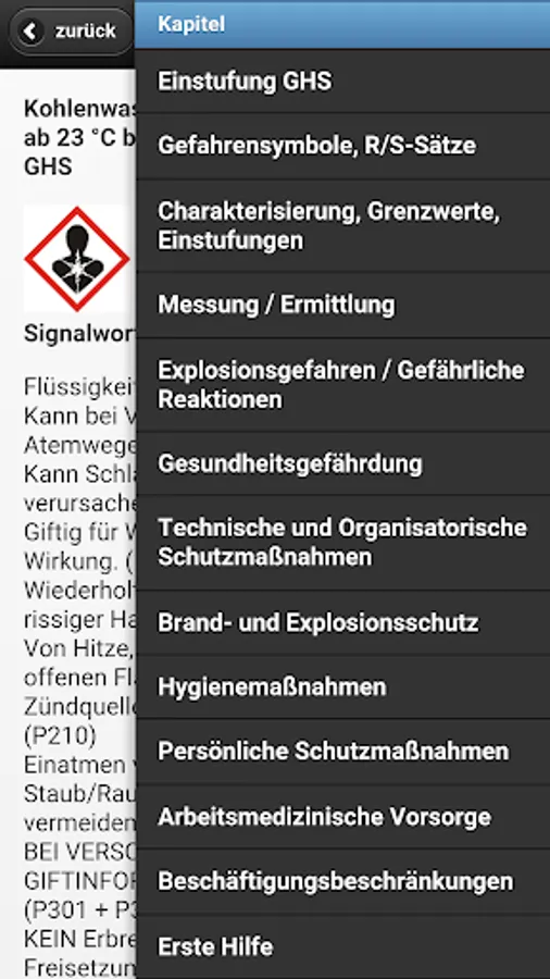 The other GisChem modules for interactive creation of operating instructions for carrying a hazardous material inventory and the GHS converter GHS and the mixture calculator is only available in the desktop version of GisChem and not part of the app.