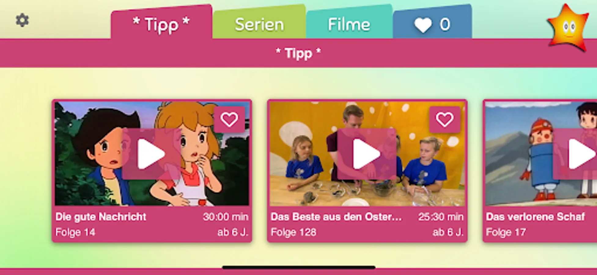 Funny and exciting stories, videos about things that you always wanted to know before. The Bible TV Kids app is your movie channel for your pocket. Determine yourself with your parents, when you see a show. Mark your favorite videos with a tap on his heart. Then you can find it quickly in the favorites.