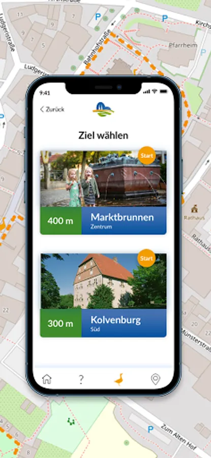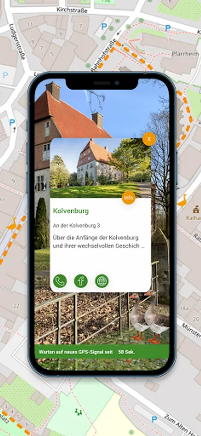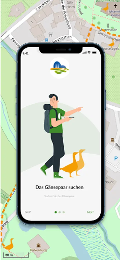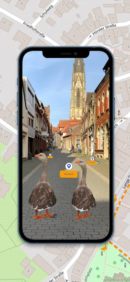 With this app you can explore the heart of Billerbeck on your own. As a virtual city guide, you have two geese at your side, which come to life using a camera function and augmented reality. The geese guide you through the historic old town of Billerbeck via a GPS signal.