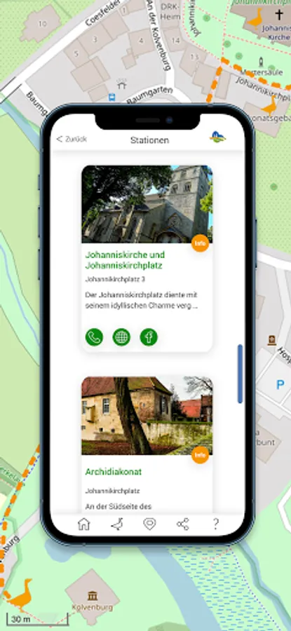 In 10 stations you will get to know the most important sights of the Billerbeck town center interactively. Along the way, you will always receive information on particularly interesting points. Another highlight: Fantastic 360 ° photos of the interior of Ludgerus Cathedral, Johanniskirche and Kolvenburg. A city map with the route and marked goose tracks on your way give you additional orientation.