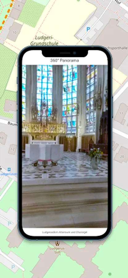 - 360 ° photos of the interior of Ludgerus Cathedral, Johanniskirche and Kolvenburg