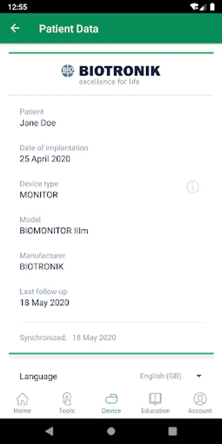 The Patient App from BIOTRONIK SE & Co. KG supports patients in their daily lives with a BIOTRONIK cardiac device. The app is intended for patients who want to be more active in their therapy and take responsibility for their own health.