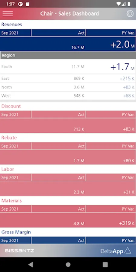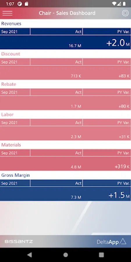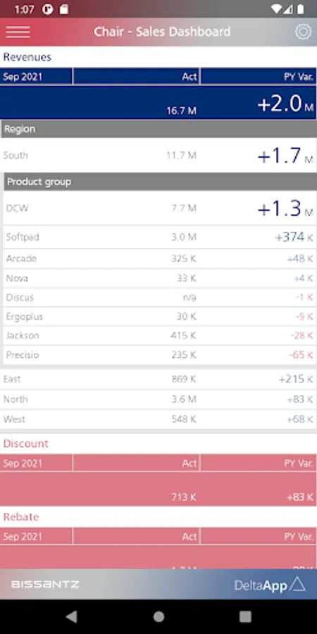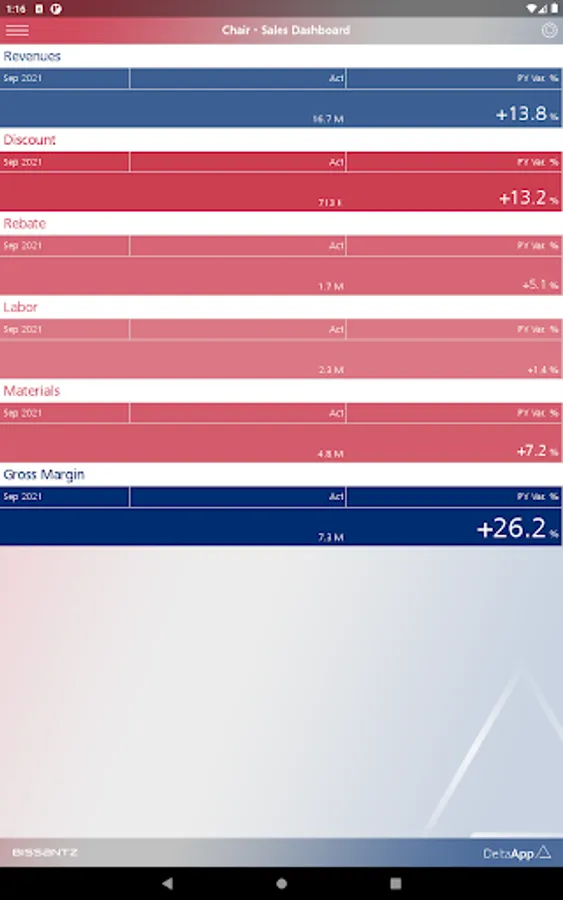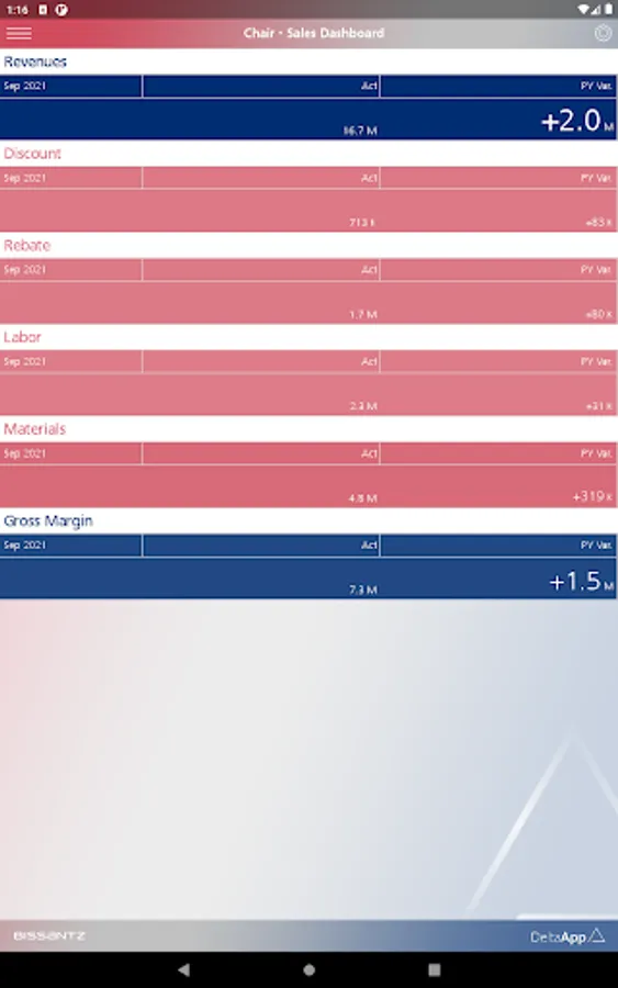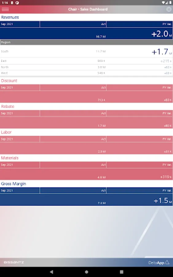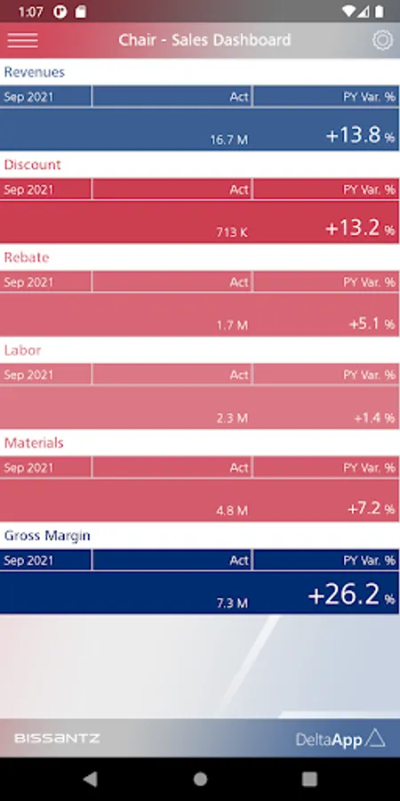 For enterprise usage, Bissantz DeltaApp can be supplied with data from ERP and CRM systems (for example, SAP, Microsoft, Oracle, IBM, Infor). Further information: https://bissantz.com/deltaapp.