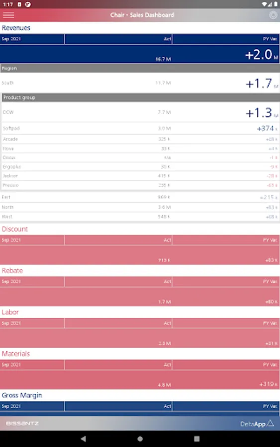 Working with data can be as natural as making a phone call – with Bissantz DeltaApp. It integrates data navigation, variance analysis, and KPI comparison in a concise and simple manner.