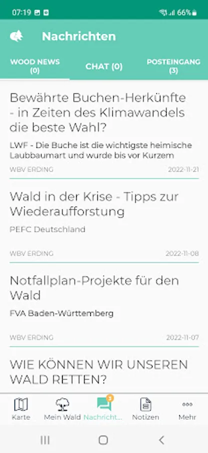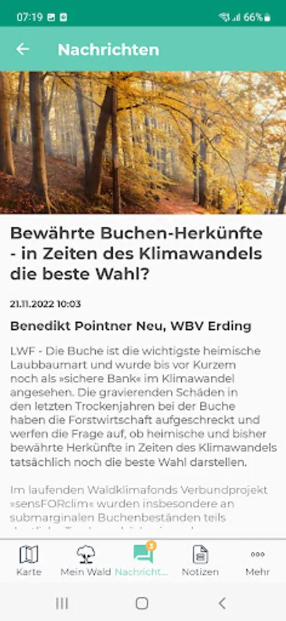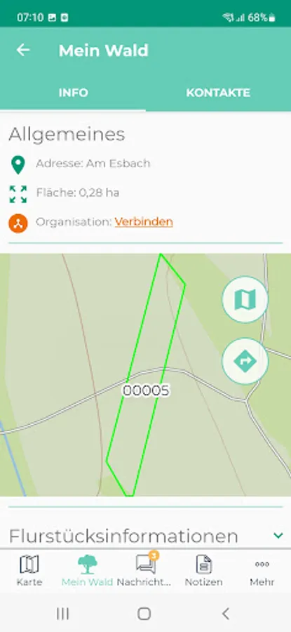 Having your own forest is an obligation. With the WoodsApp, you can keep an eye on your forest at all times via your smartphone - even if you're not on site. The app shows you exactly where your forest property is and takes you there directly via the link to the smartphone navigation system. WoodsApp is an easy-to-use smartphone app for early risk detection, e.g. of bark beetle infestation, as well as for creating and sharing map notes (point, line, area). In addition, it enables the direct exchange of information with foresters or experts from the responsible forest owners' association.