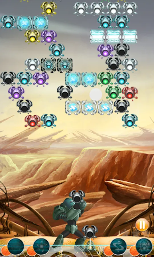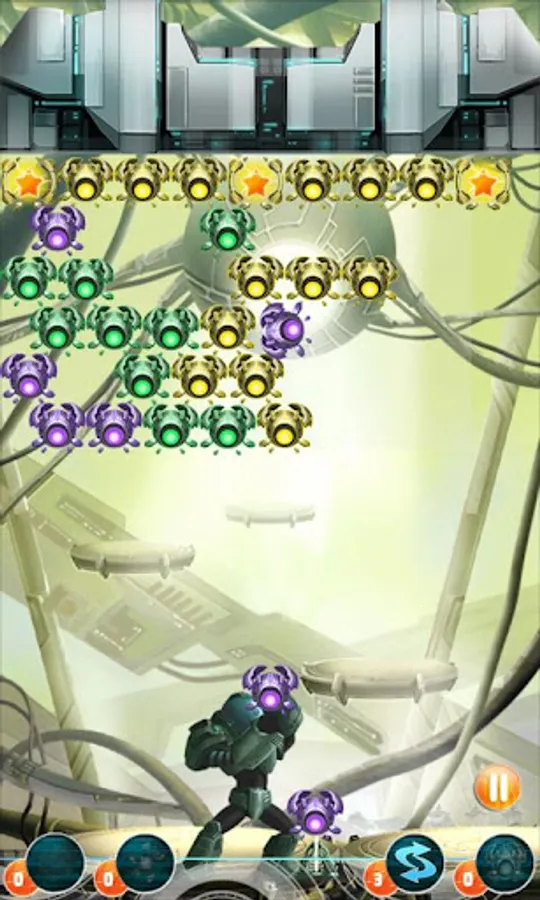 Help the commander to clear all stages of the invading drones. Use their match-three-overload bug to cause them to explode!