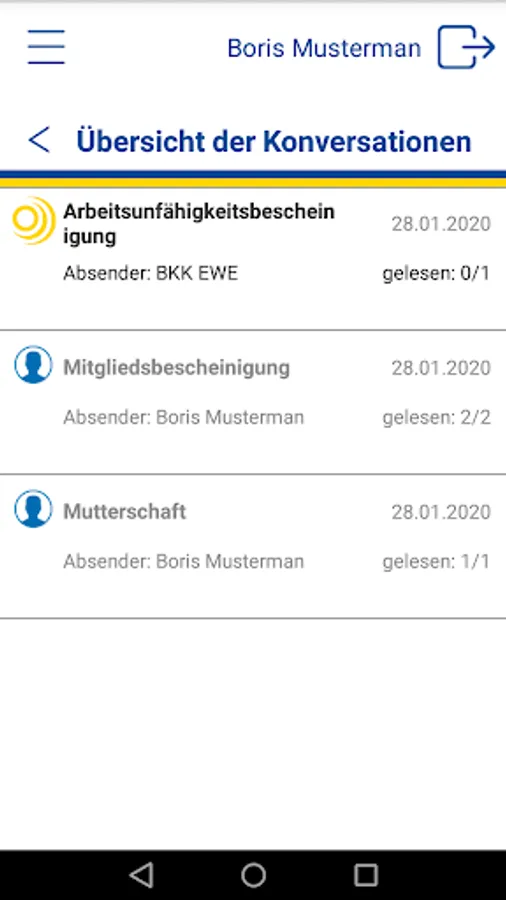 In the app, the insured can send us messages and upload all documents. Sick reports can also be transmitted as a file via this service.