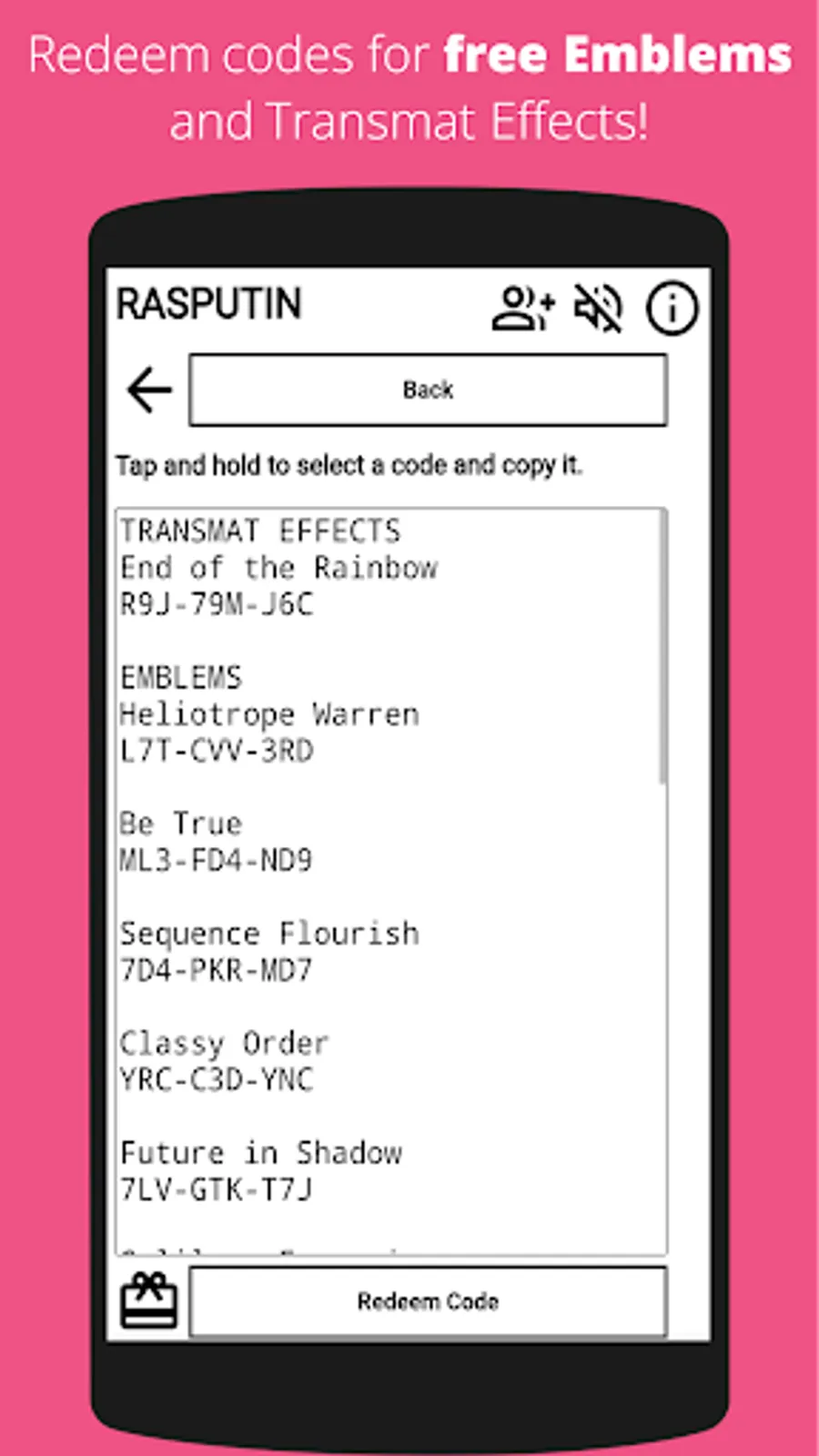 - get free emblem and transmat effect codes
