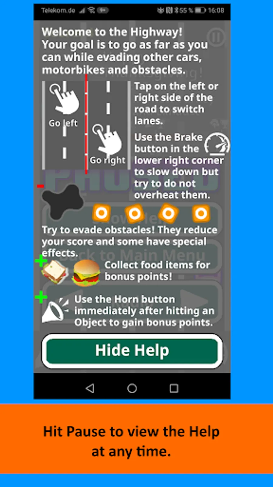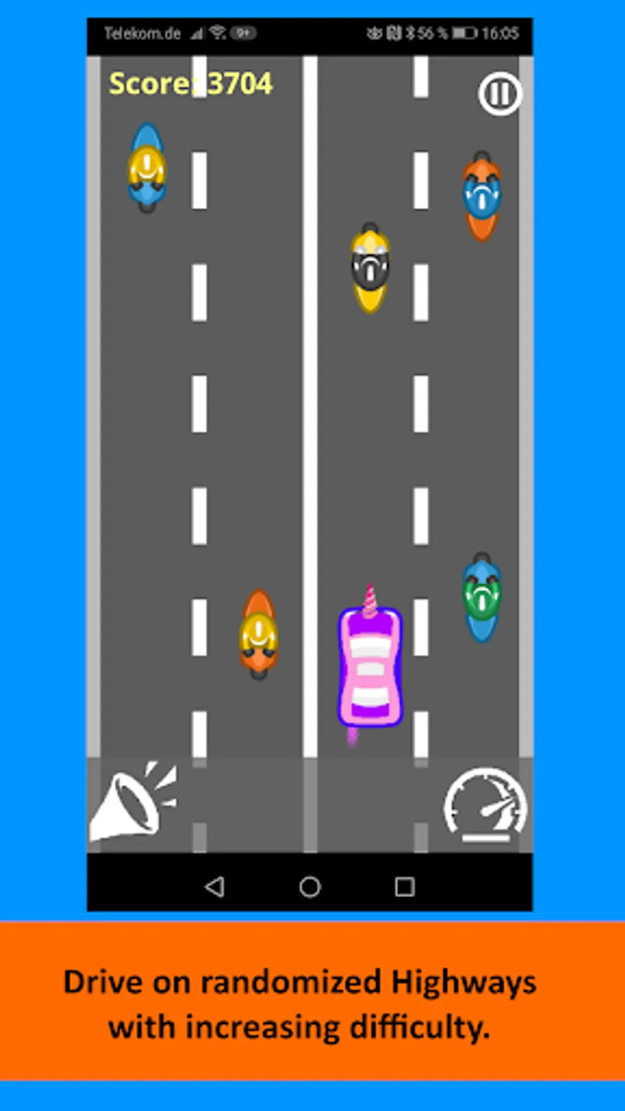 Drive on randomized highways with increasing difficulty and try to evade obstacles.
