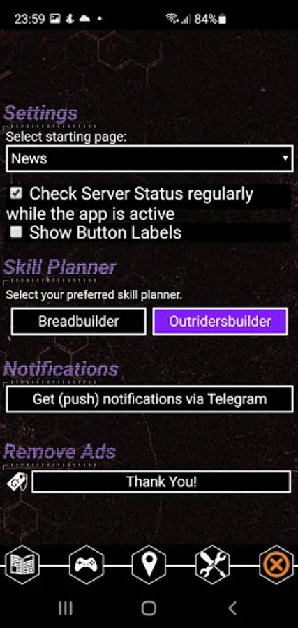 Note: This app is an unofficial, non-commercial fan project and not affiliated with Square Enix. Images and other content from Outriders is used according to the Material Usage Policy of Square Enix.