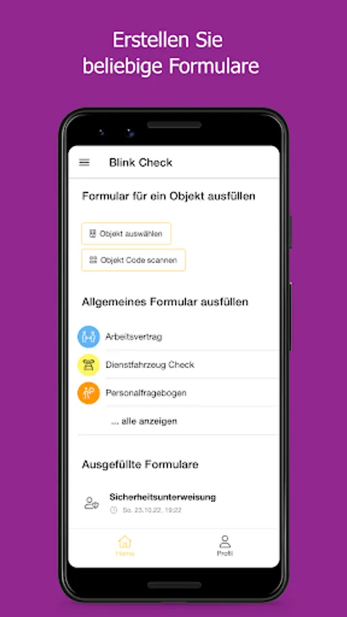 The checklists and forms created in Blink Check can be filled out via the app or in the browser.