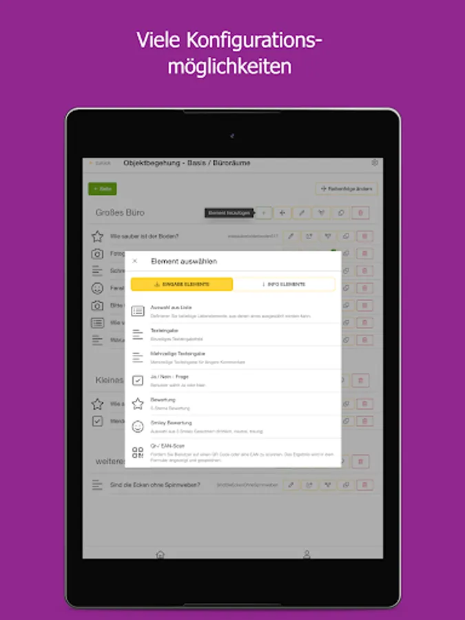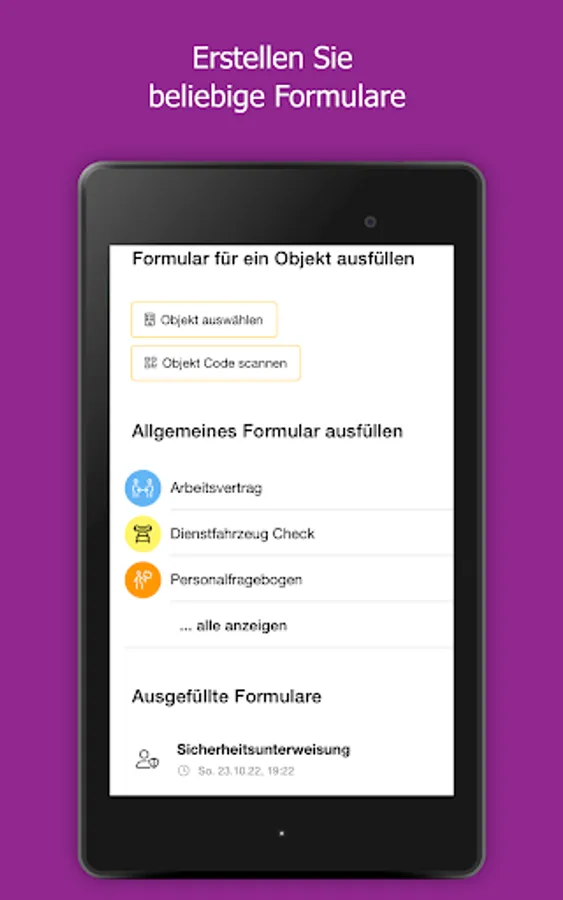 Freely configurable templates, such as property inspections, any control lists or documentation as part of quality management, can be created with electronic signatures and customizable PDF report templates.