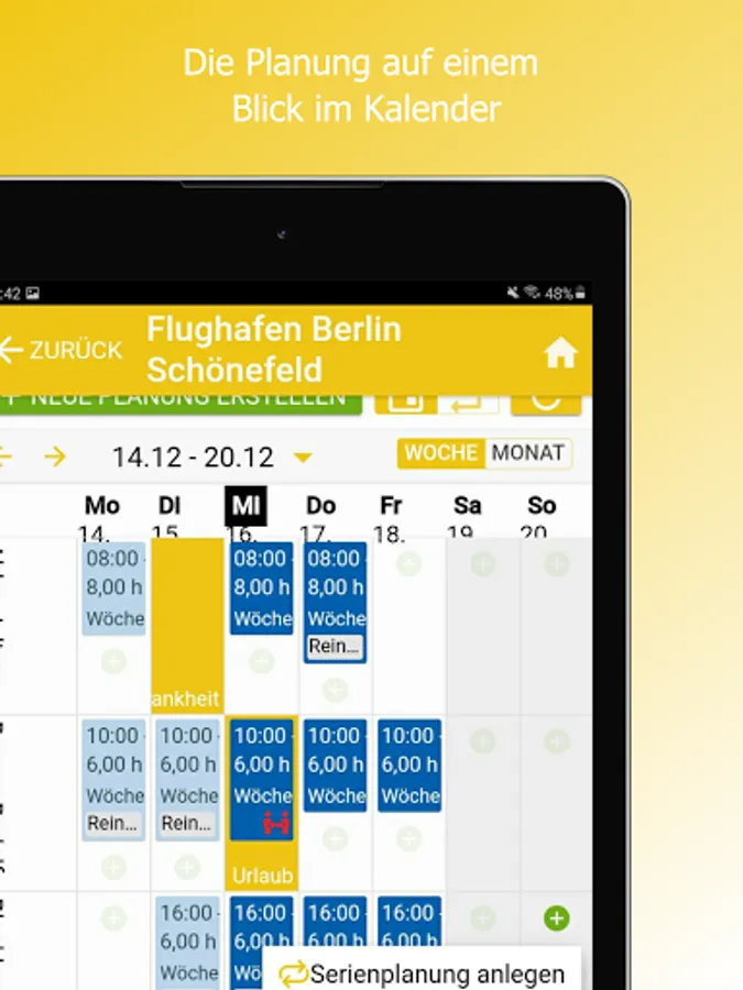 Locations (objects) and employees can be created and scheduled via the manager app.