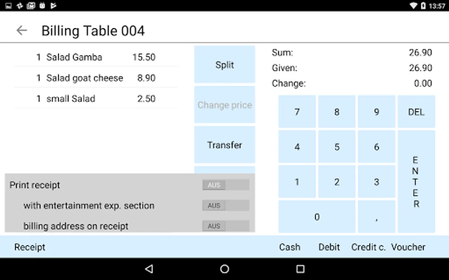 - Table receipt