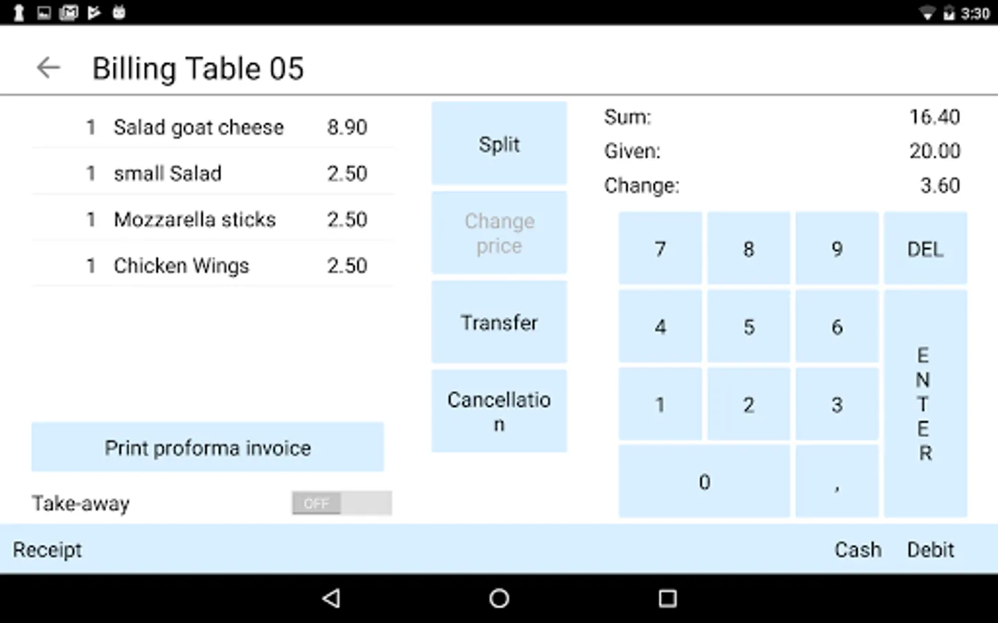 - Table receipt